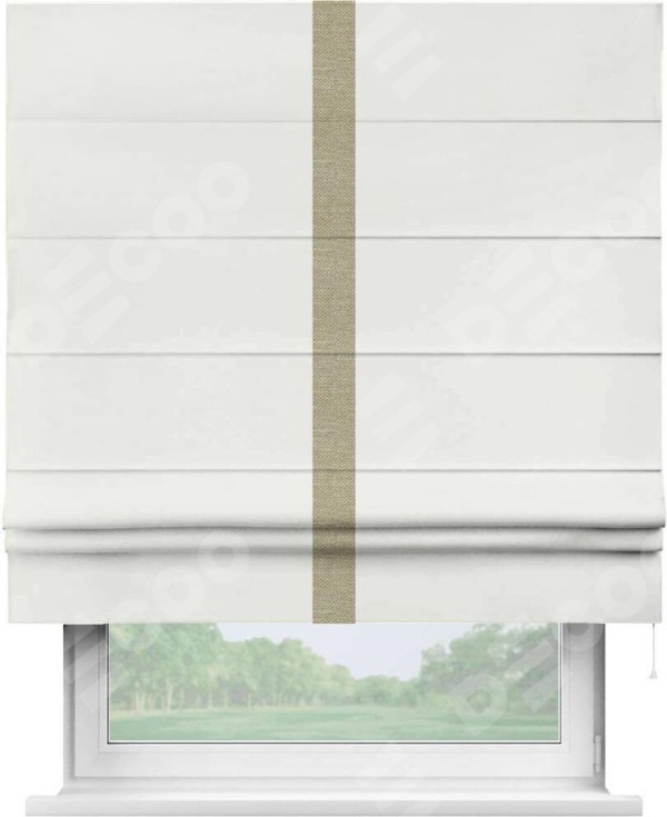 Римская штора «Кортин» для проема, лён димаут молочный с кантом Хайвэй