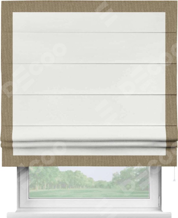 Римская штора «Кортин» для проема, лён димаут молочный с кантом Чесс