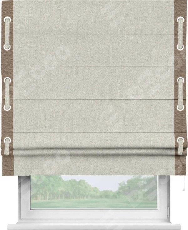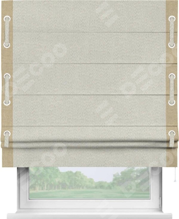 Римская штора «Cortin» для проёма, лён димаут светло-бежевый с кантом Стрим Дуо (люверсы с пояском)