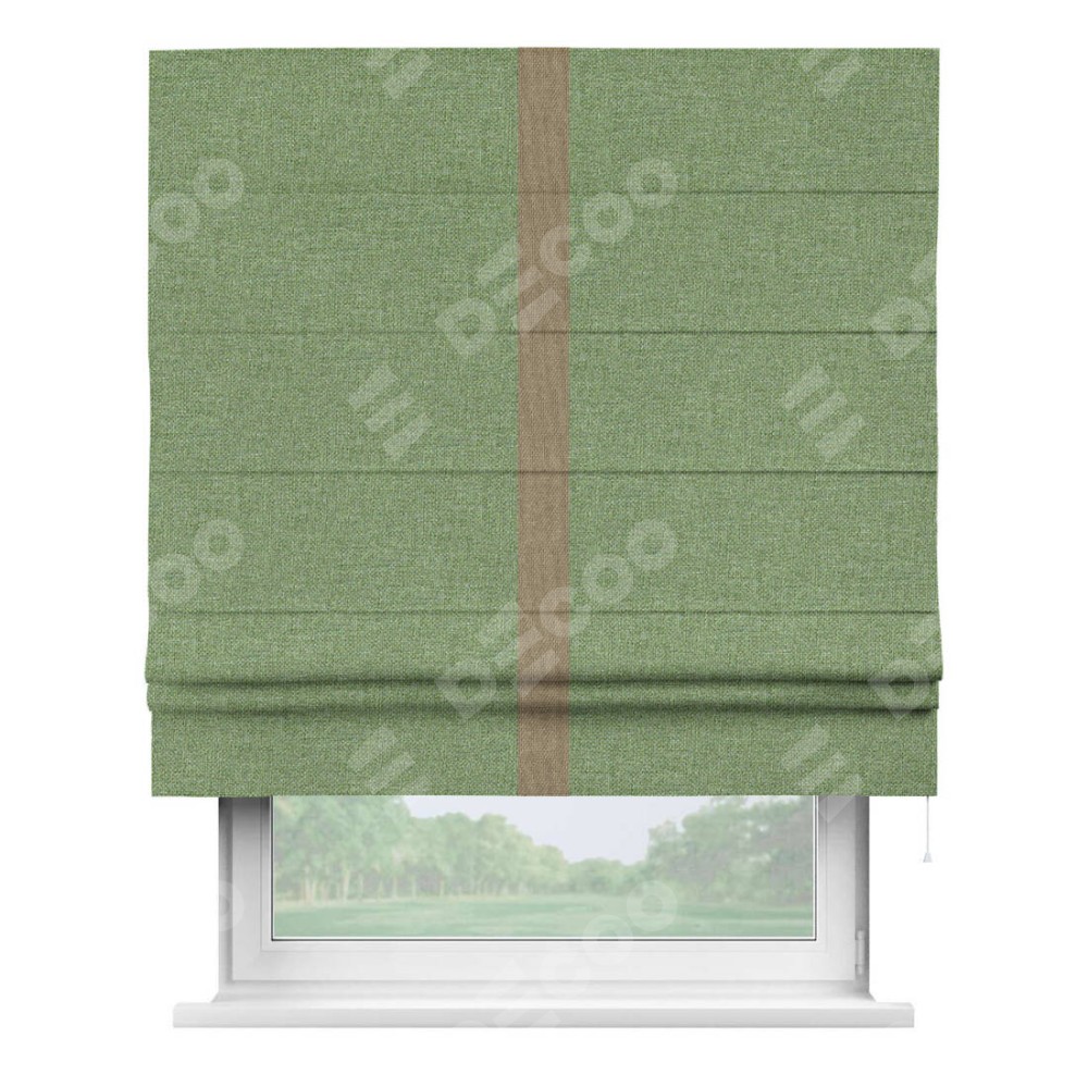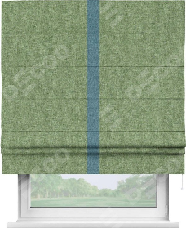 Римская штора «Cortin» для проёма, лён димаут светло-салатовый с кантом Хайвэй