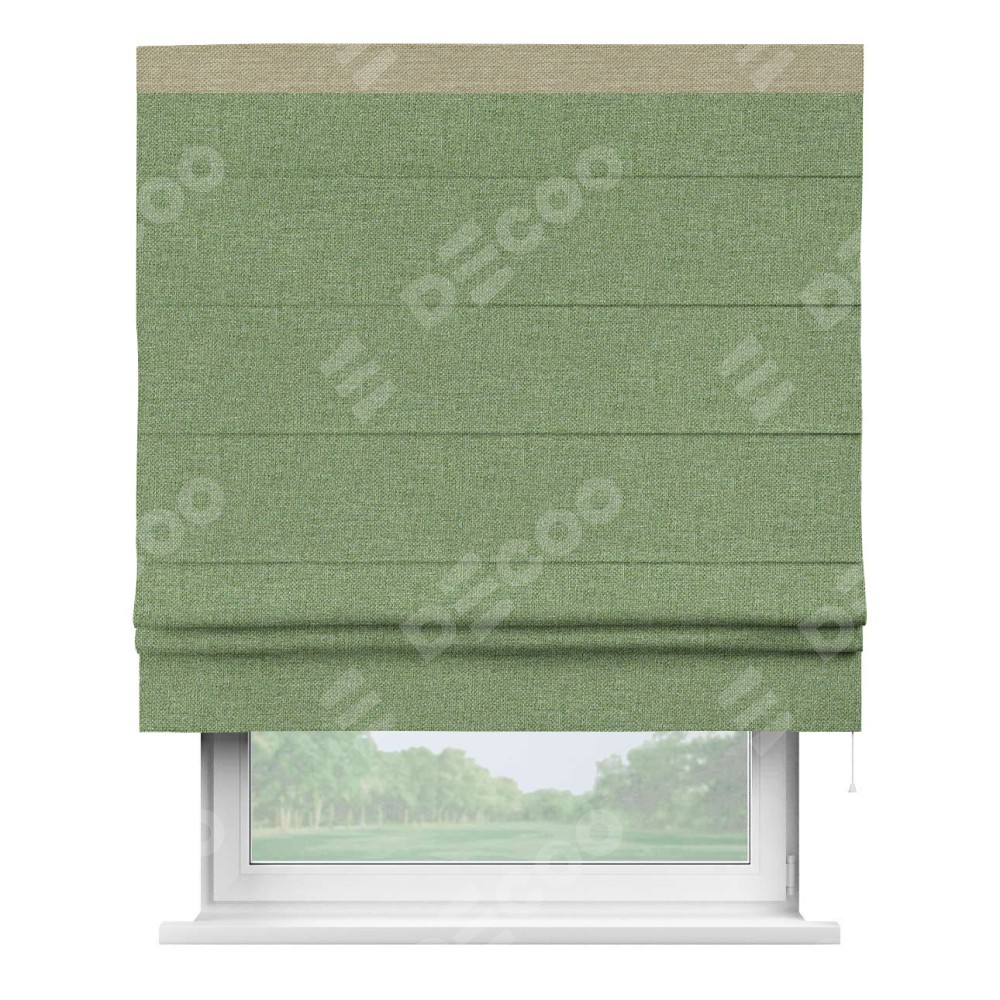 Римская штора «Cortin» для проёма, лён димаут светло-салатовый с кантом Кинг
