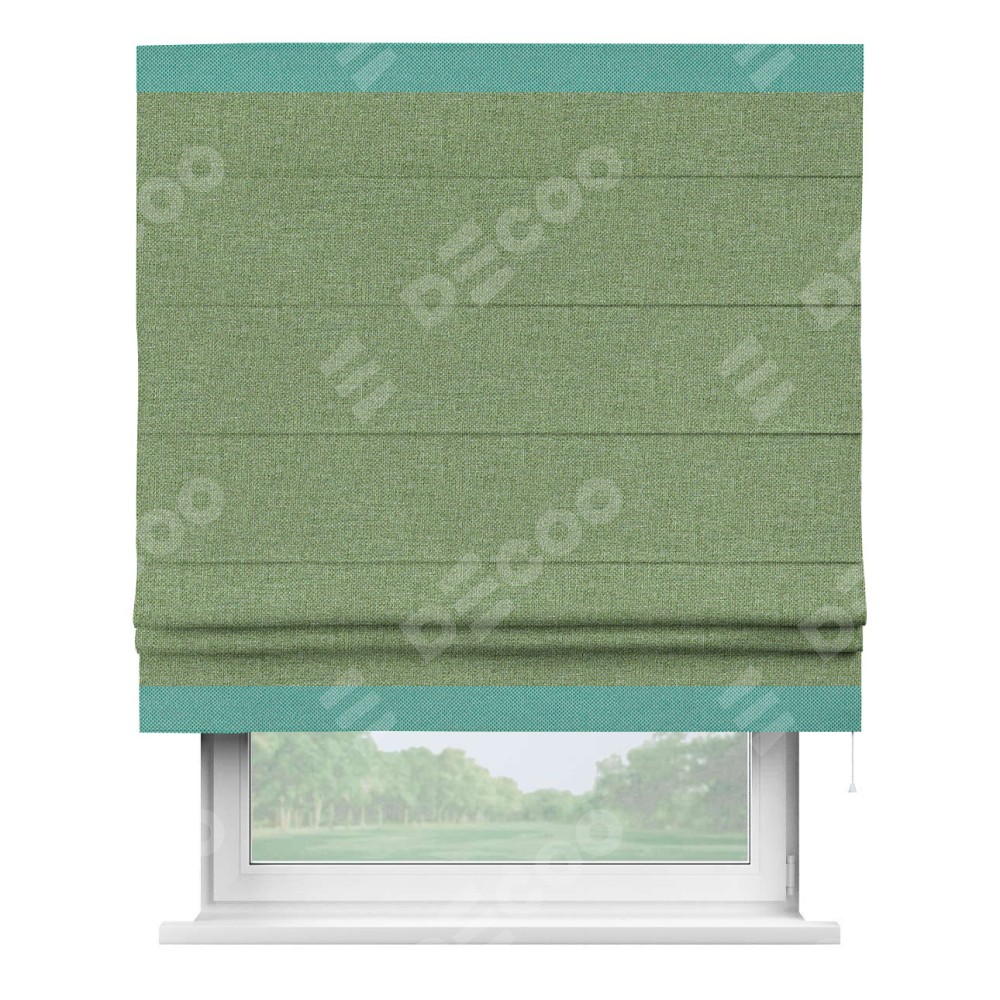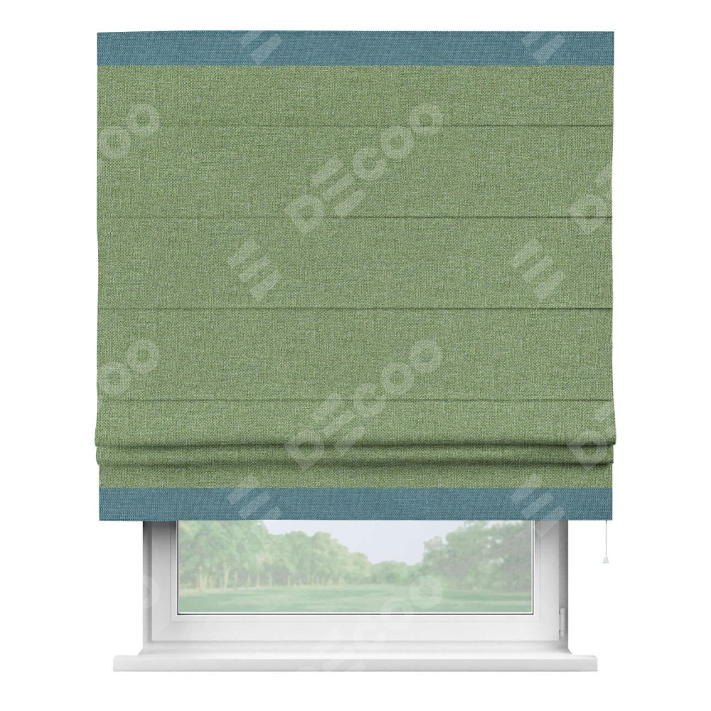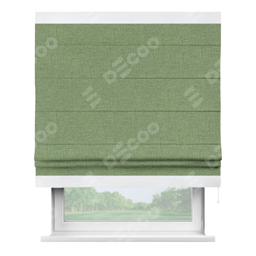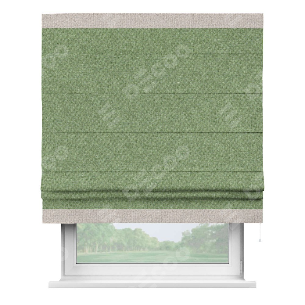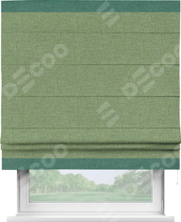Римская штора «Cortin» для проёма, лён димаут светло-салатовый с кантом Горизонт