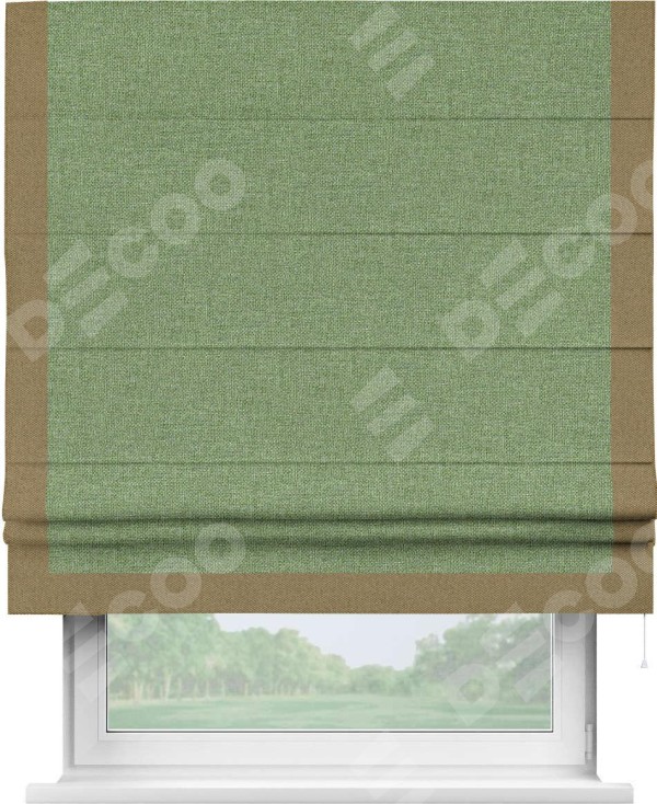 Римская штора «Cortin» для проёма, лён димаут светло-салатовый с кантом Виктория