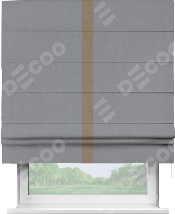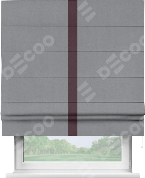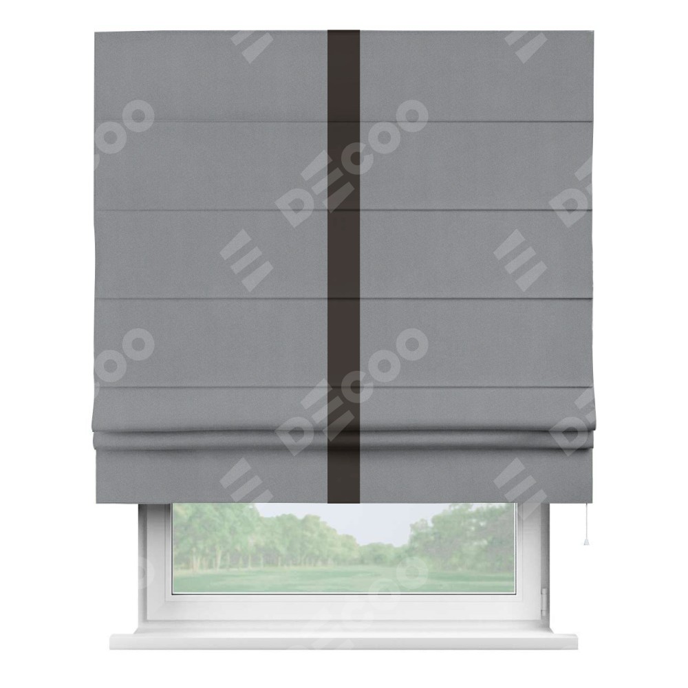 Римская штора «Кортин» для проема, блэкаут однотонный серый с кантом Хайвэй