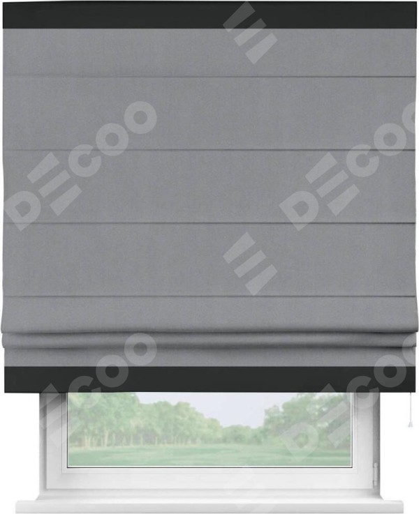 Римская штора «Кортин» для проема, блэкаут однотонный серый с кантом Горизонт