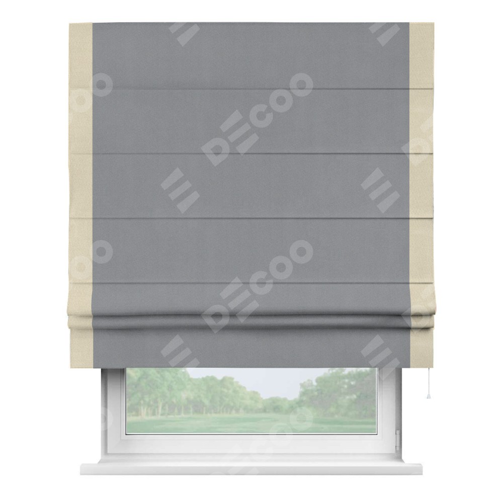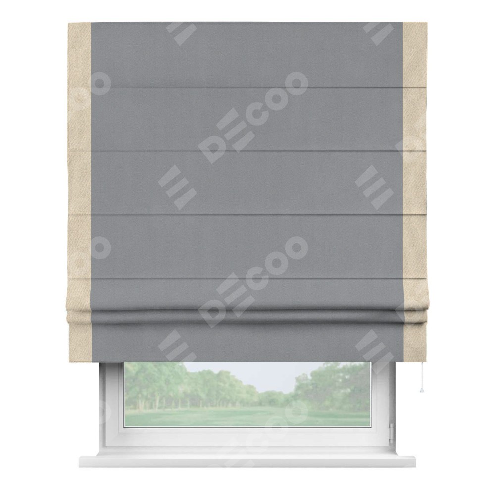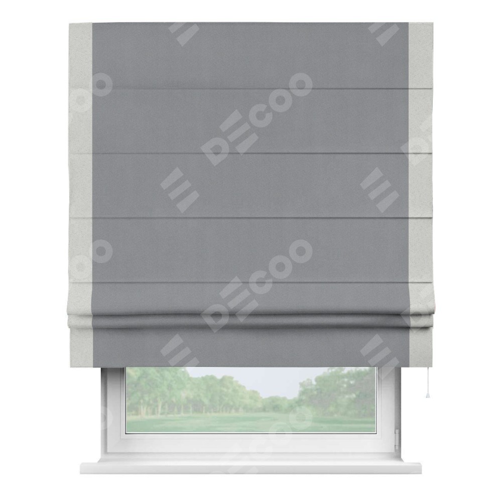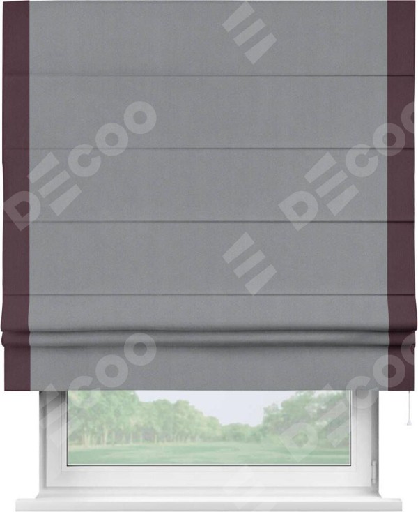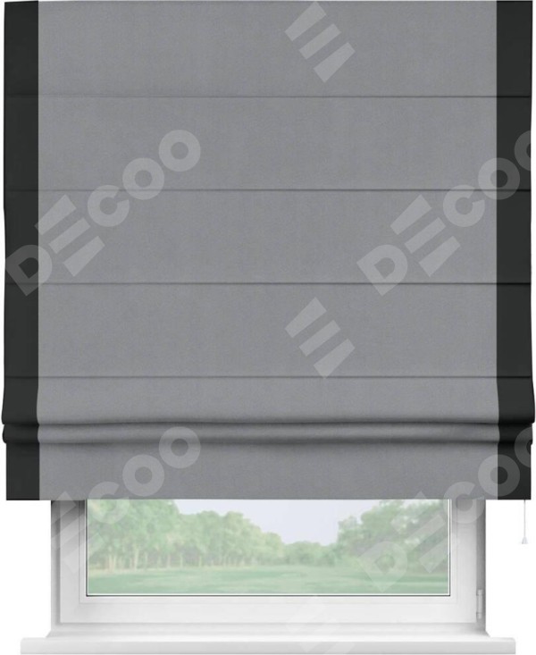 Римская штора «Кортин» для проема, блэкаут однотонный серый с кантом Стрим Дуо