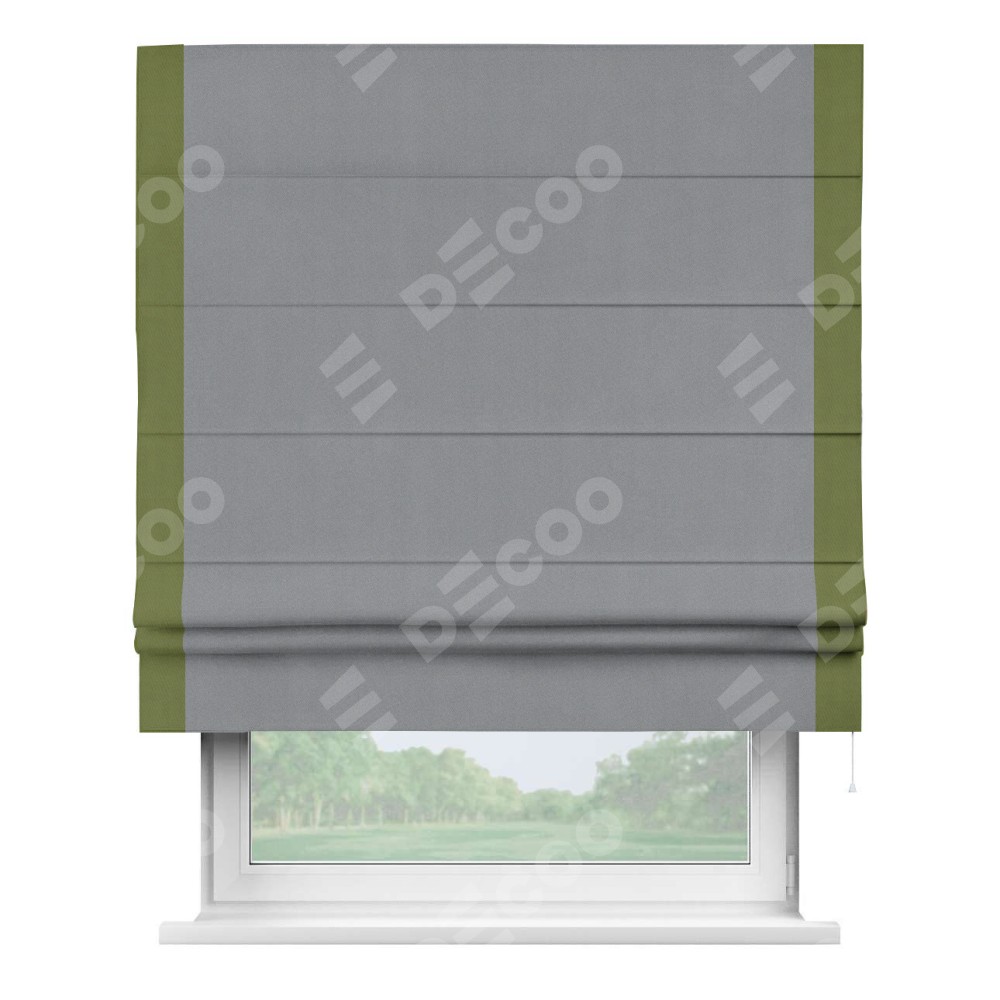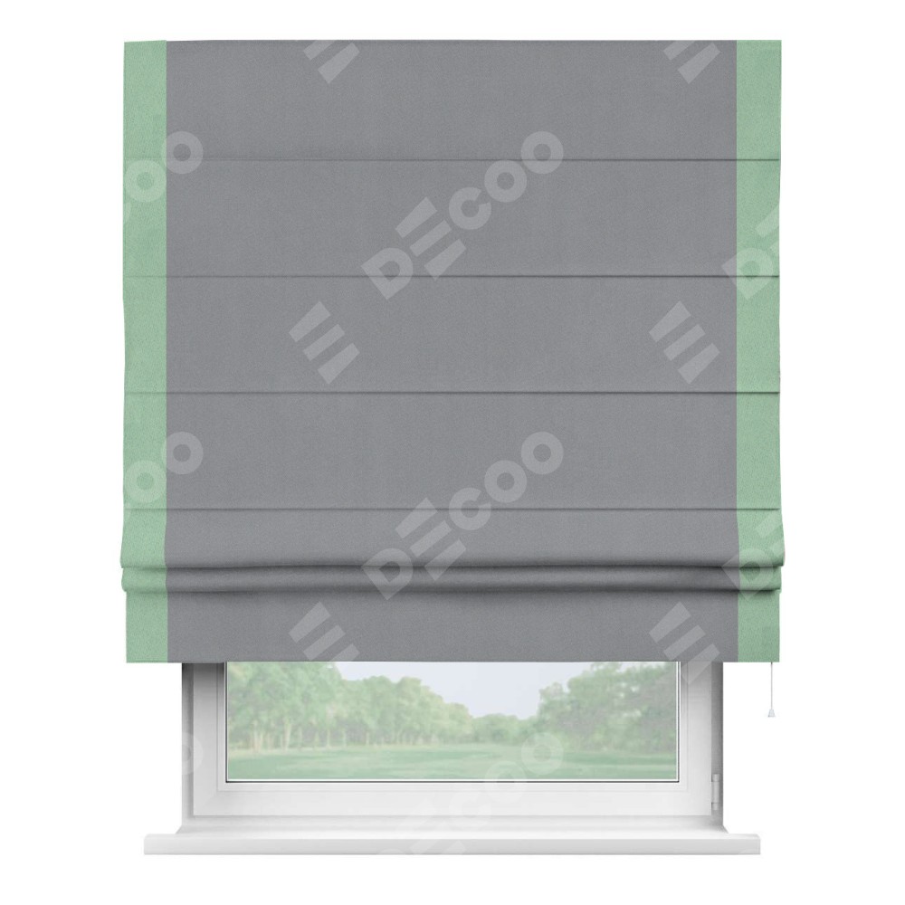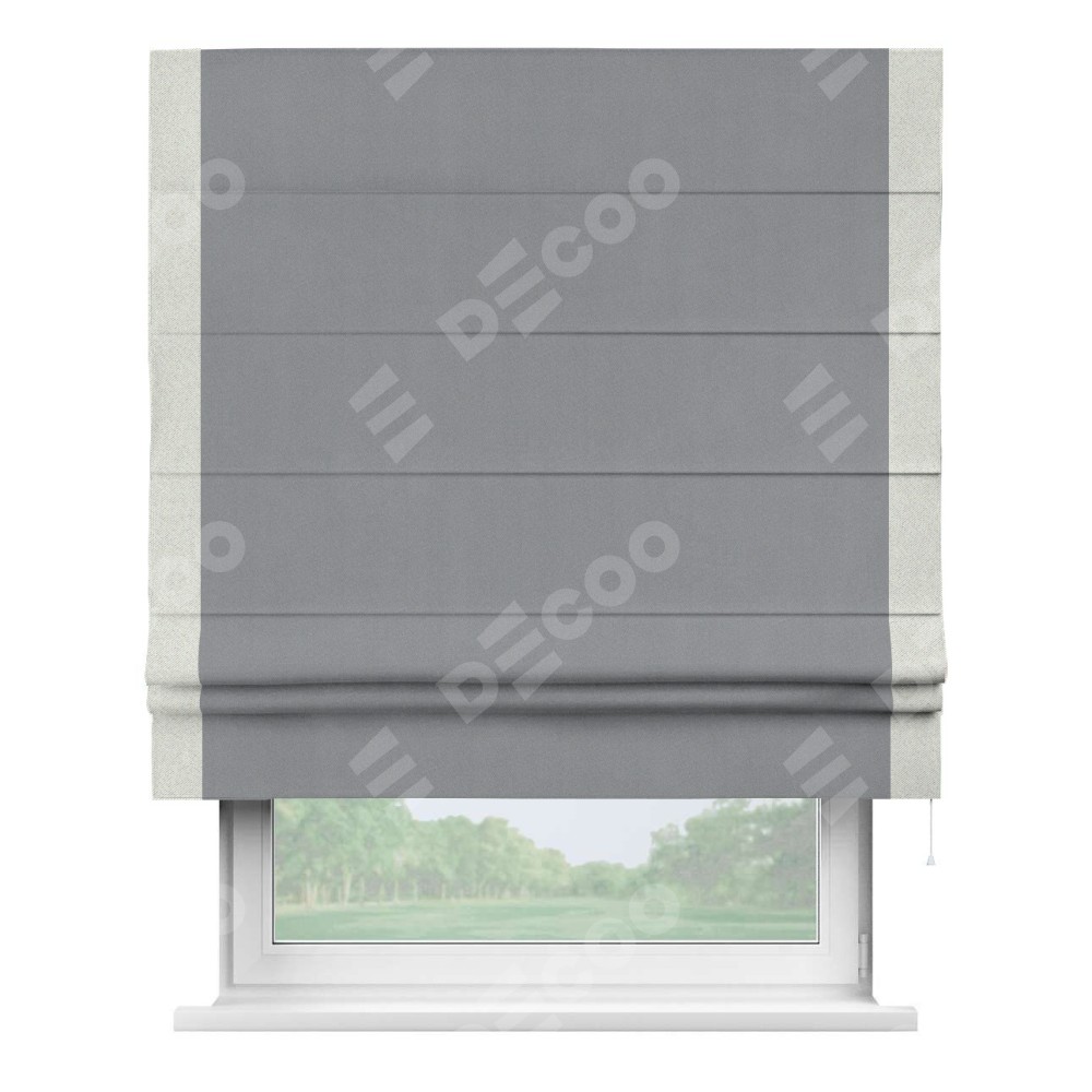 Римская штора «Кортин» для проема, блэкаут однотонный серый с кантом Стрим Дуо
