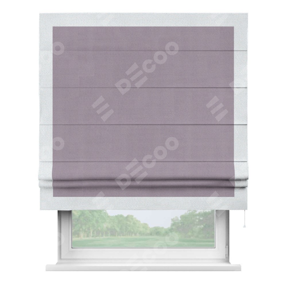 Римская штора «Кортин» для проёма, блэкаут однотонный лиловый с кантом Чесс