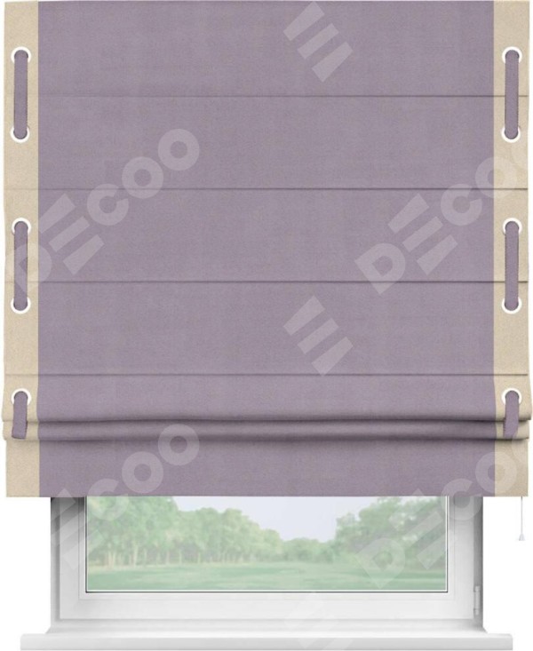 Римская штора «Кортин» для проёма, блэкаут однотонный лиловый с кантом Стрим Дуо (люверсы с пояском)
