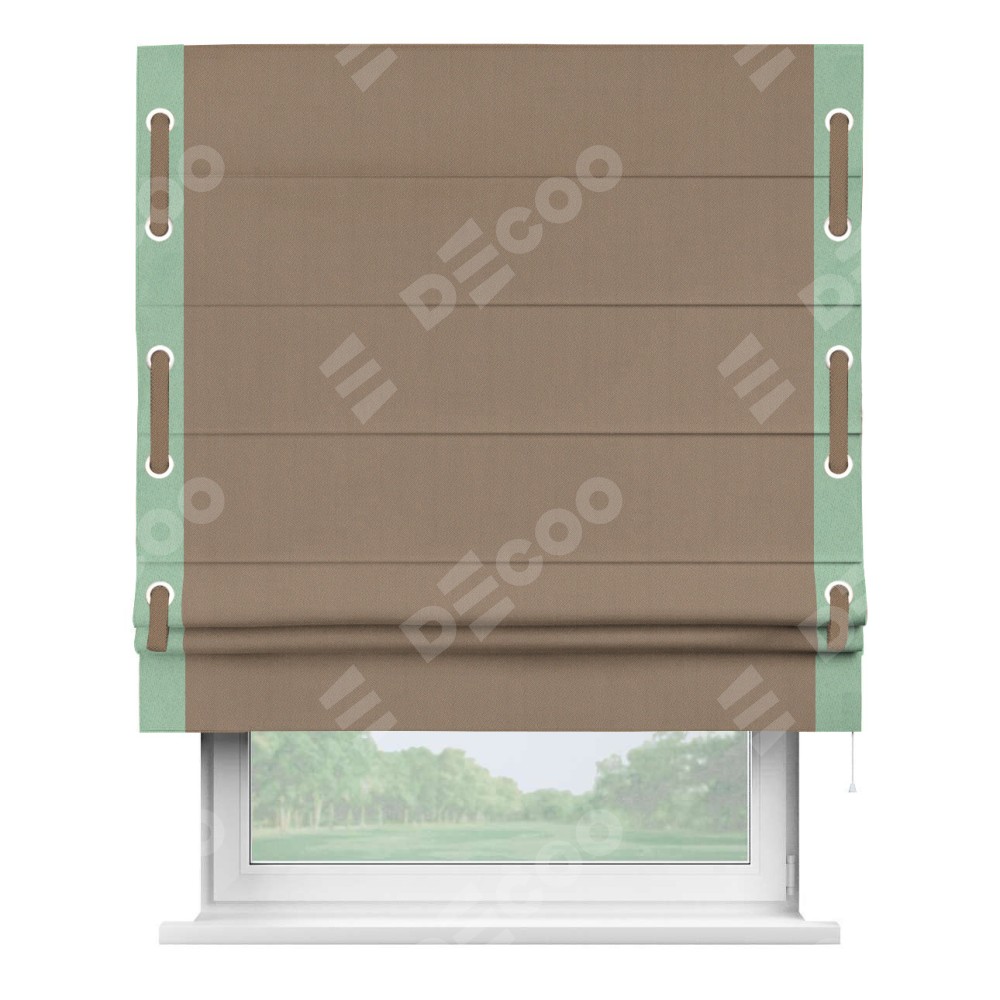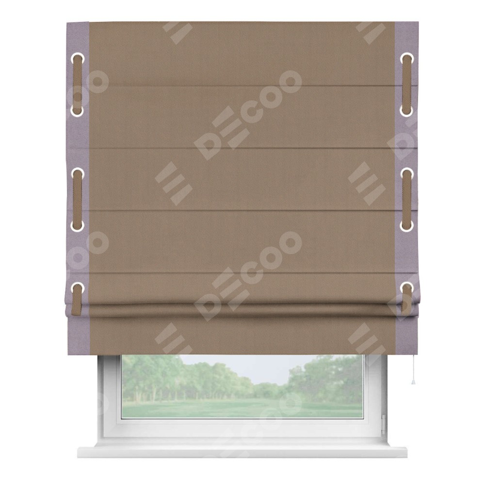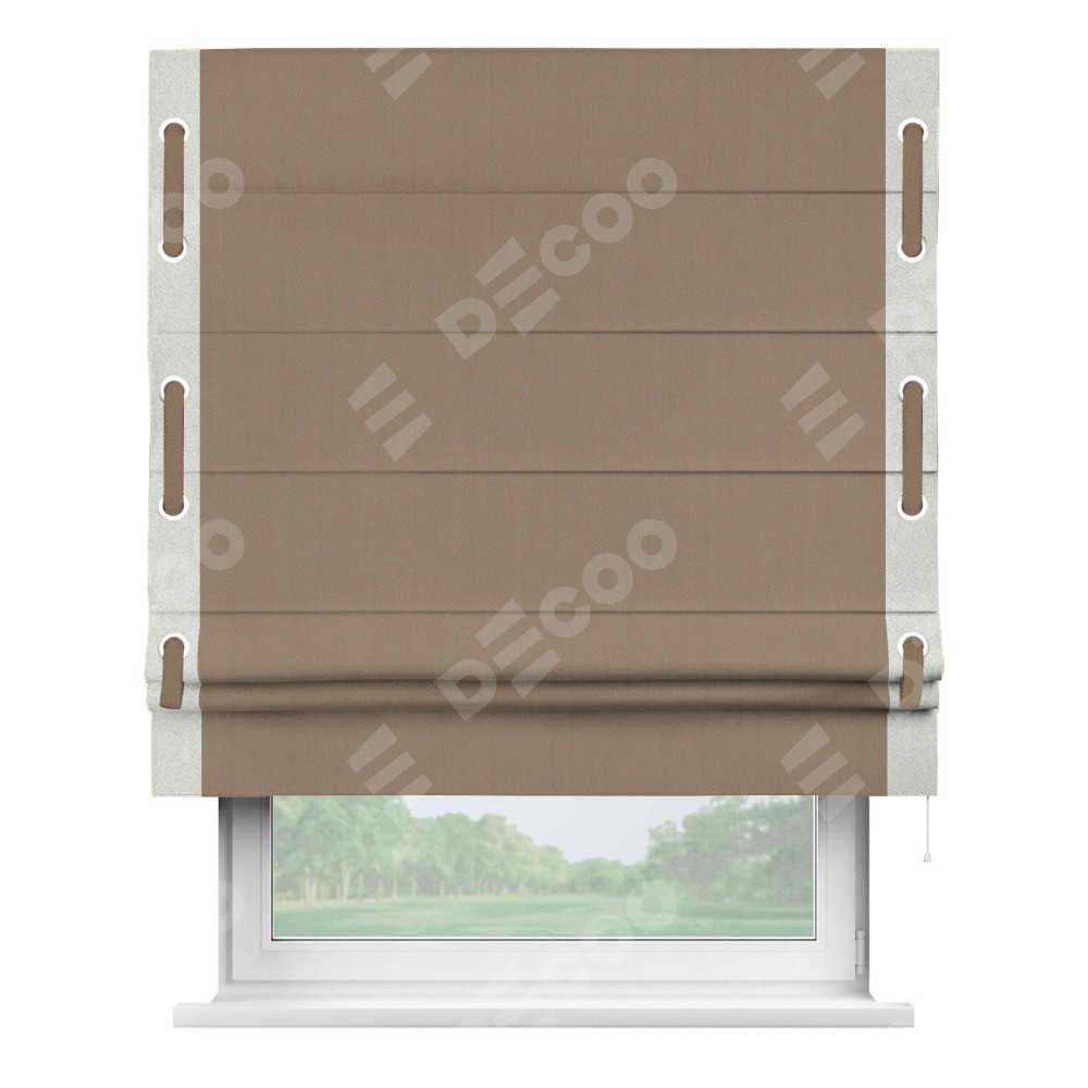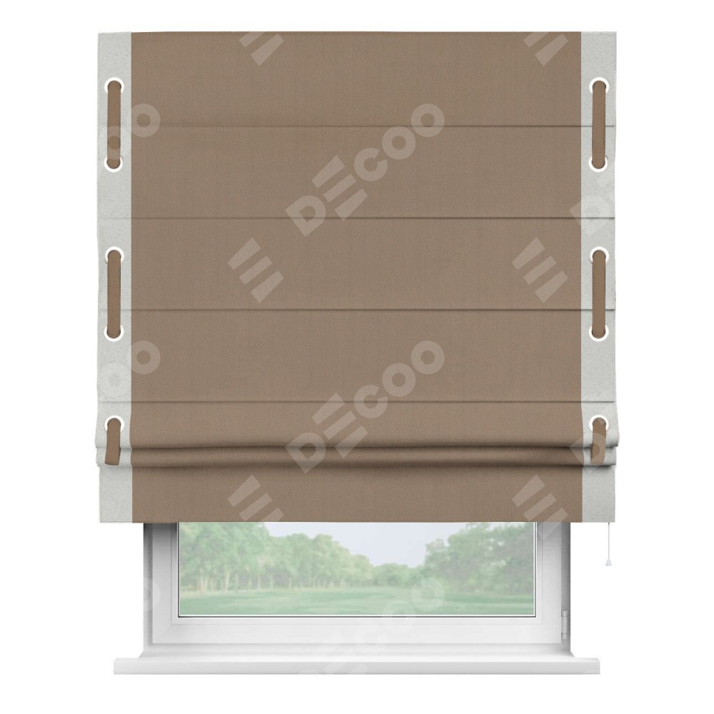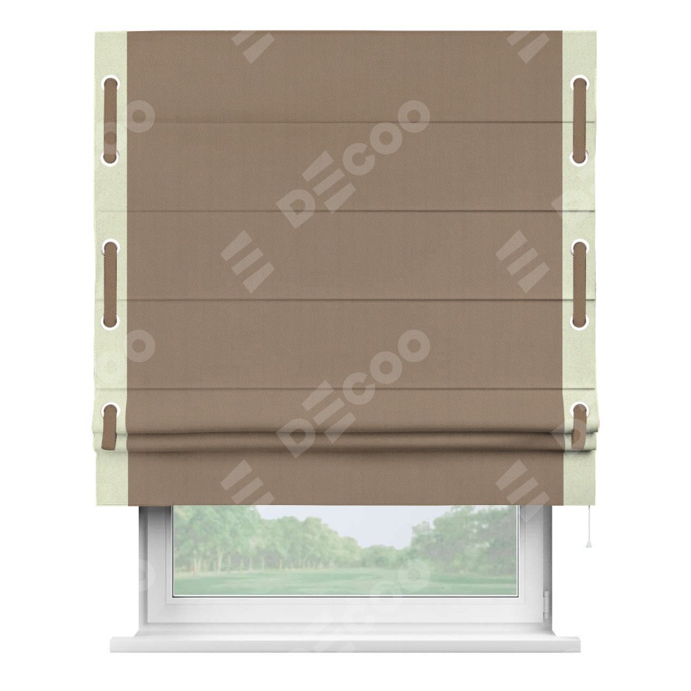 Римская штора «Cortin» для проёма, ткань блэкаут однотонный кофейно-бежевый с кантом Стрим Дуо (люверсы с пояском)