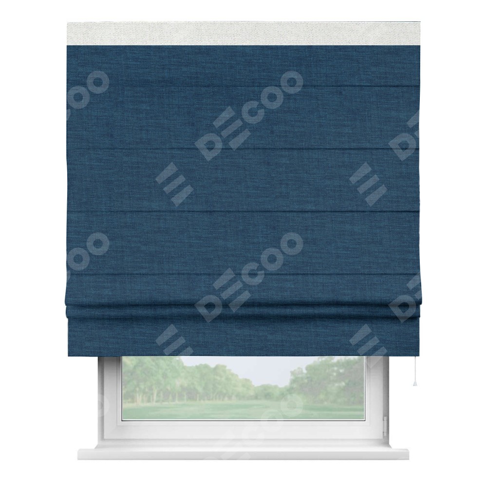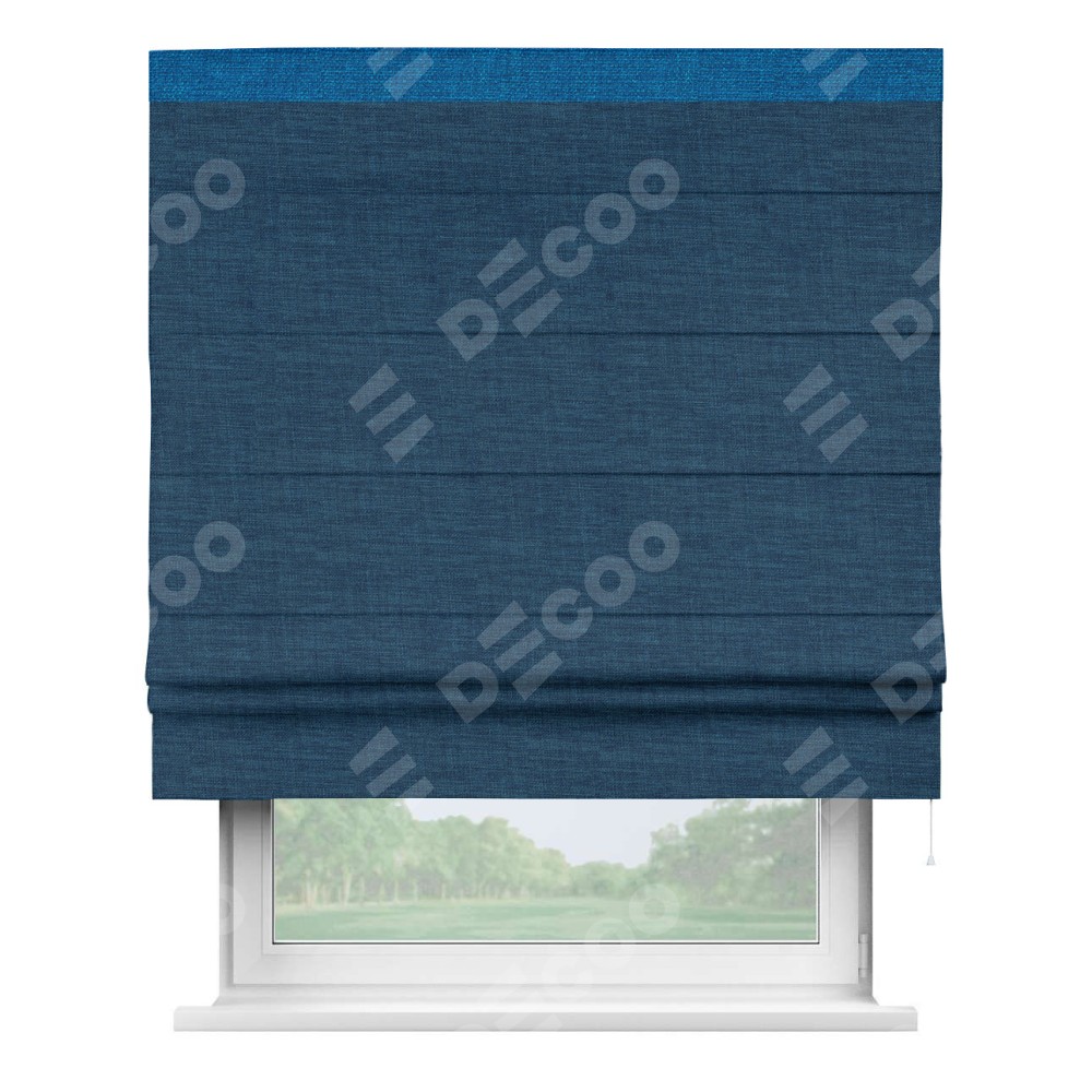Римская штора «Кортин» для проёма, лён синий, с кантом Кинг