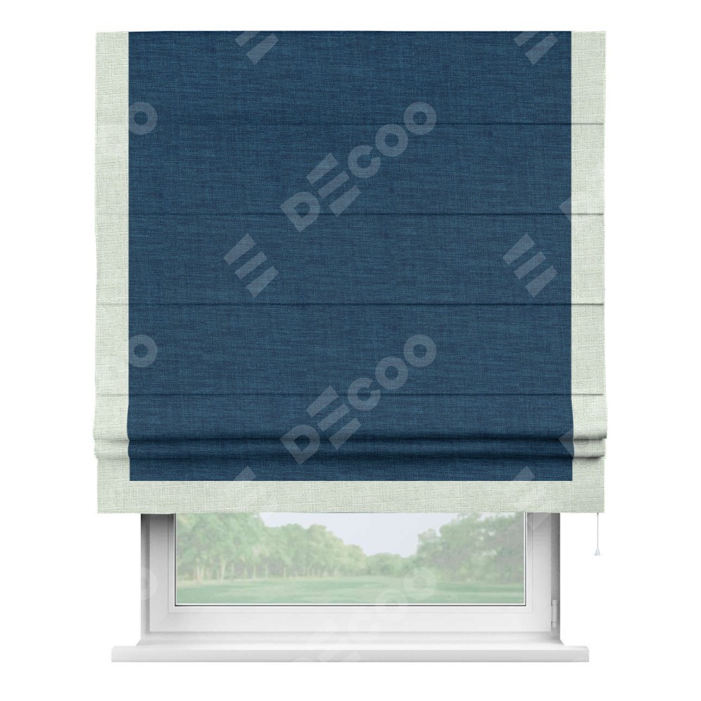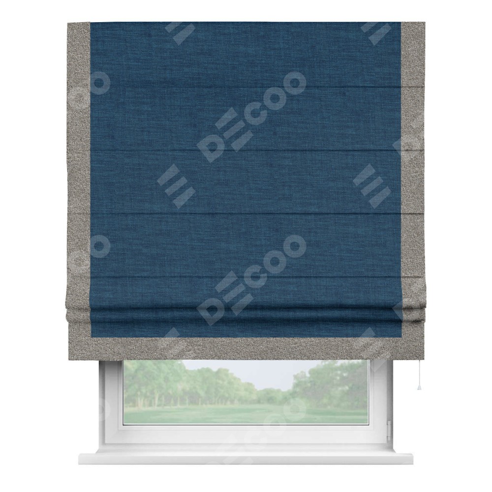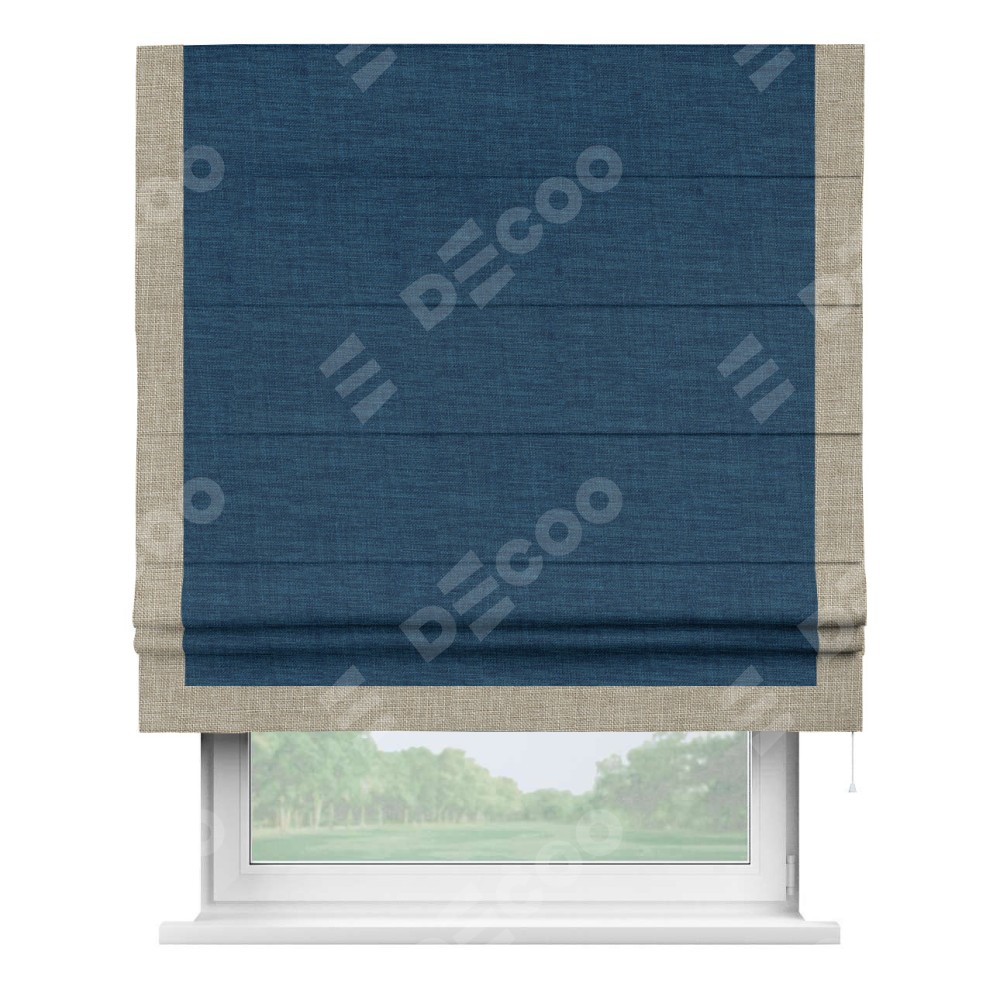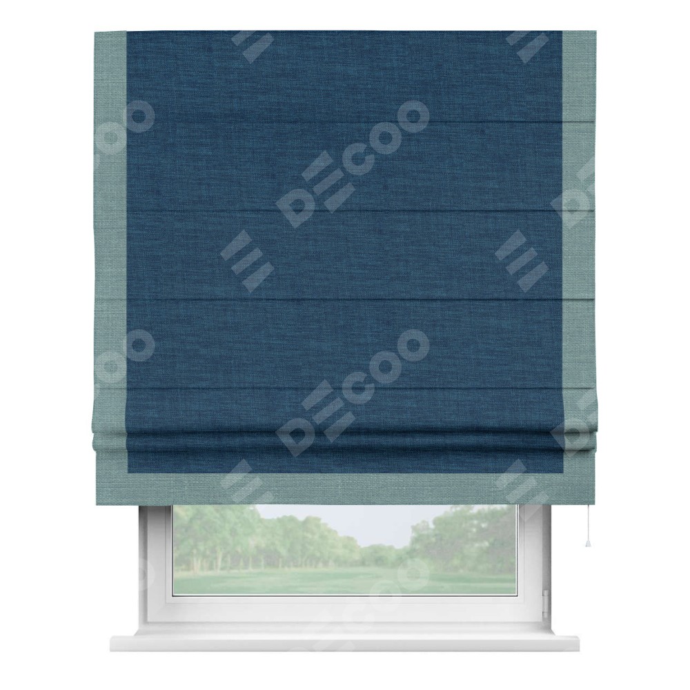 Римская штора «Кортин» для проёма, лён синий, с кантом Виктория