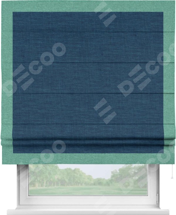 Римская штора «Кортин» для проёма, лён синий, с кантом Чесс
