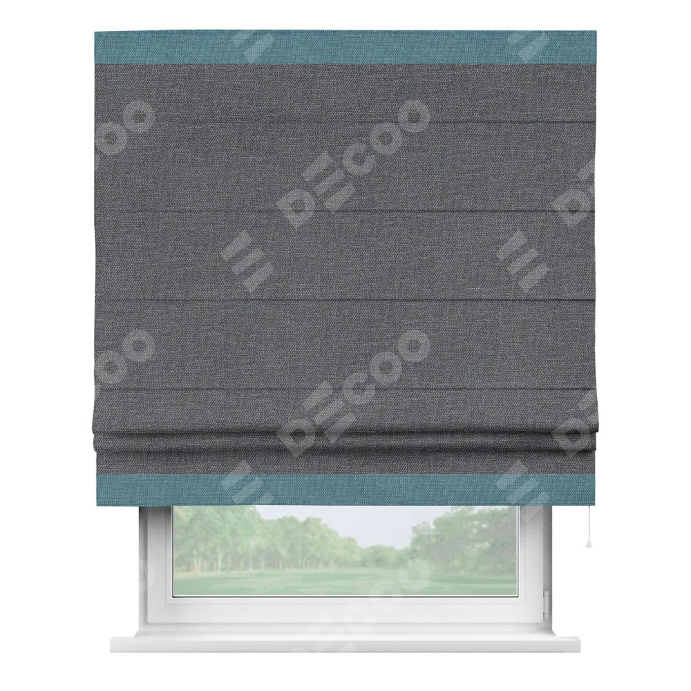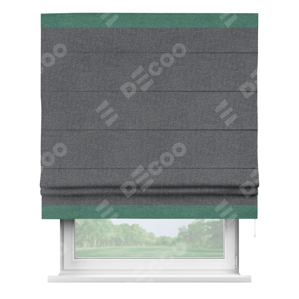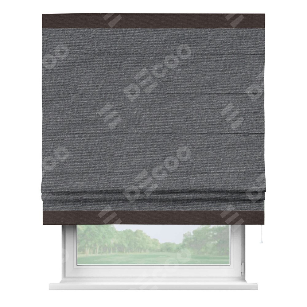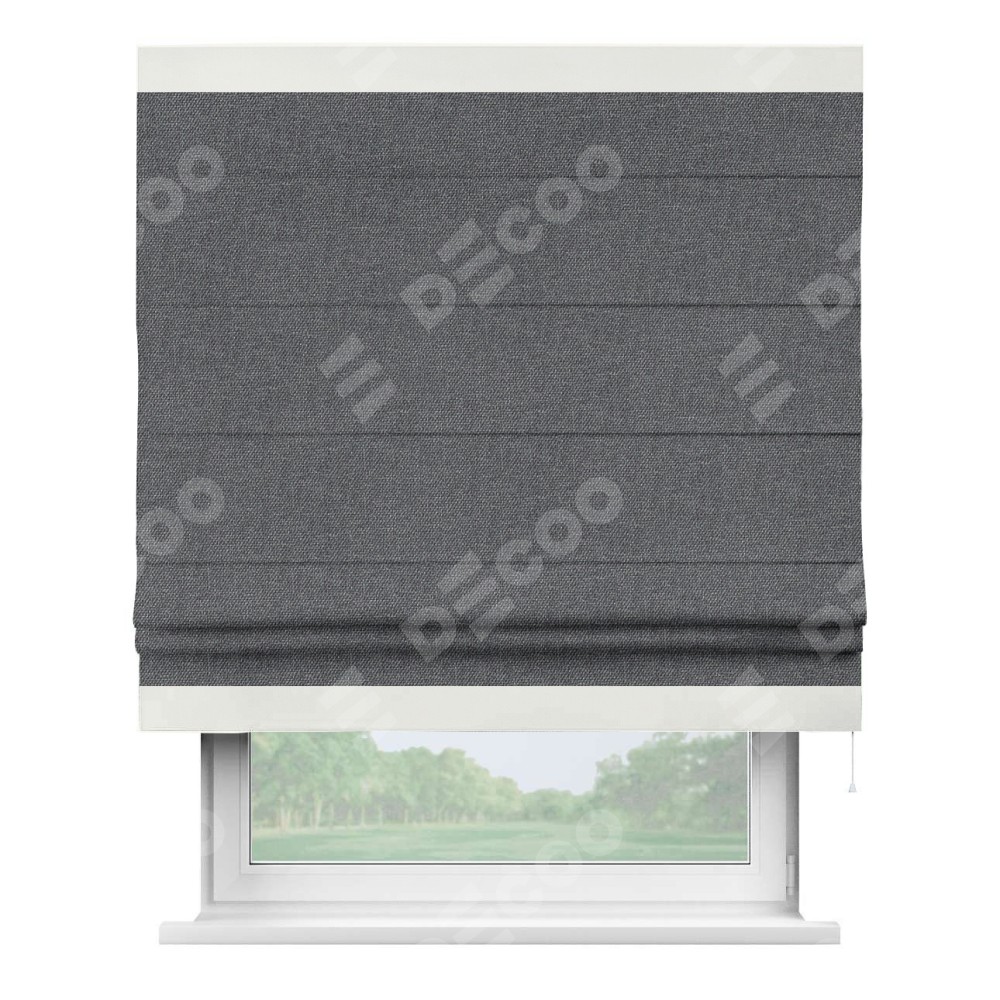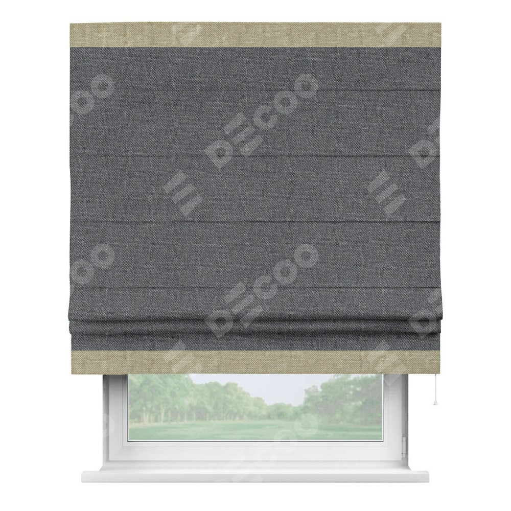 Римская штора «Кортин» для проёма, лён димаут графит с кантом Горизонт