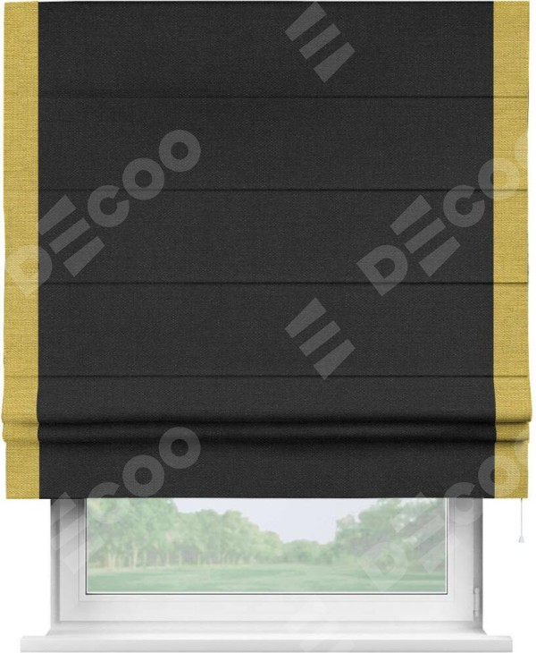 Римская штора «Кортин» для проёма, лён чёрный, с кантом Стрим Дуо