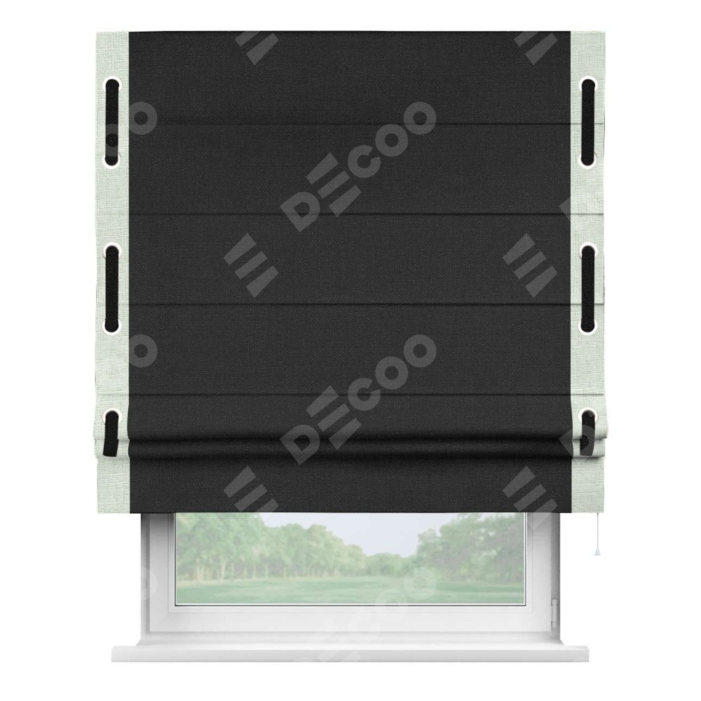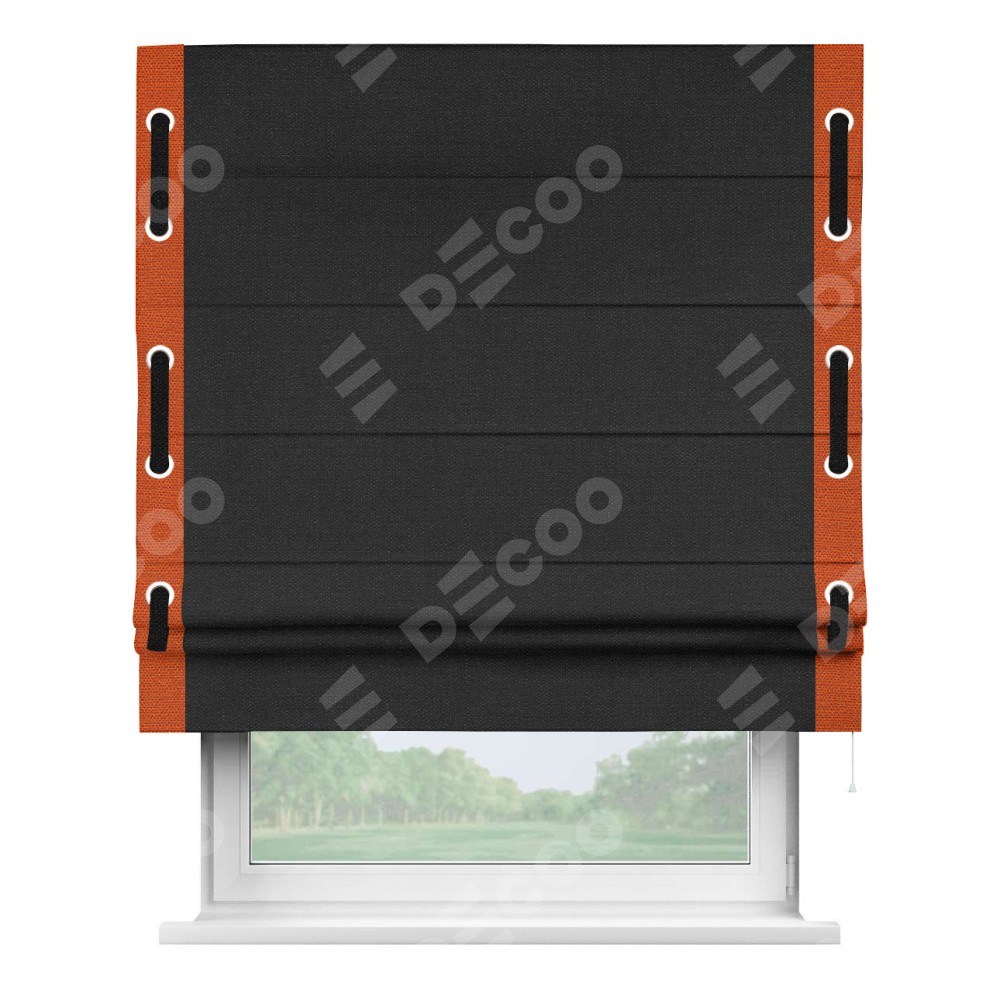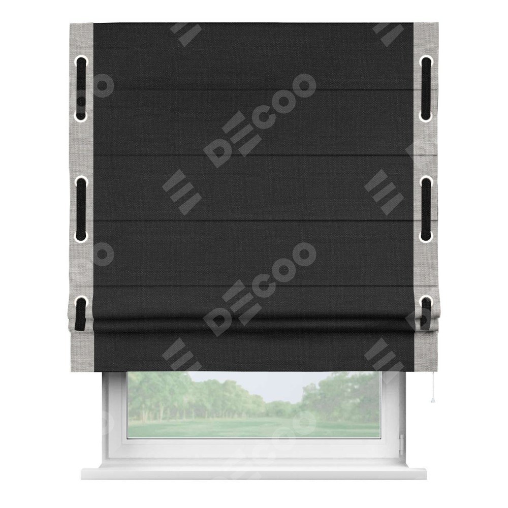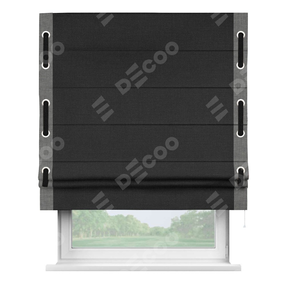 Римская штора «Кортин» для проёма, лён чёрный, с кантом Стрим Дуо (люверсы с пояском)