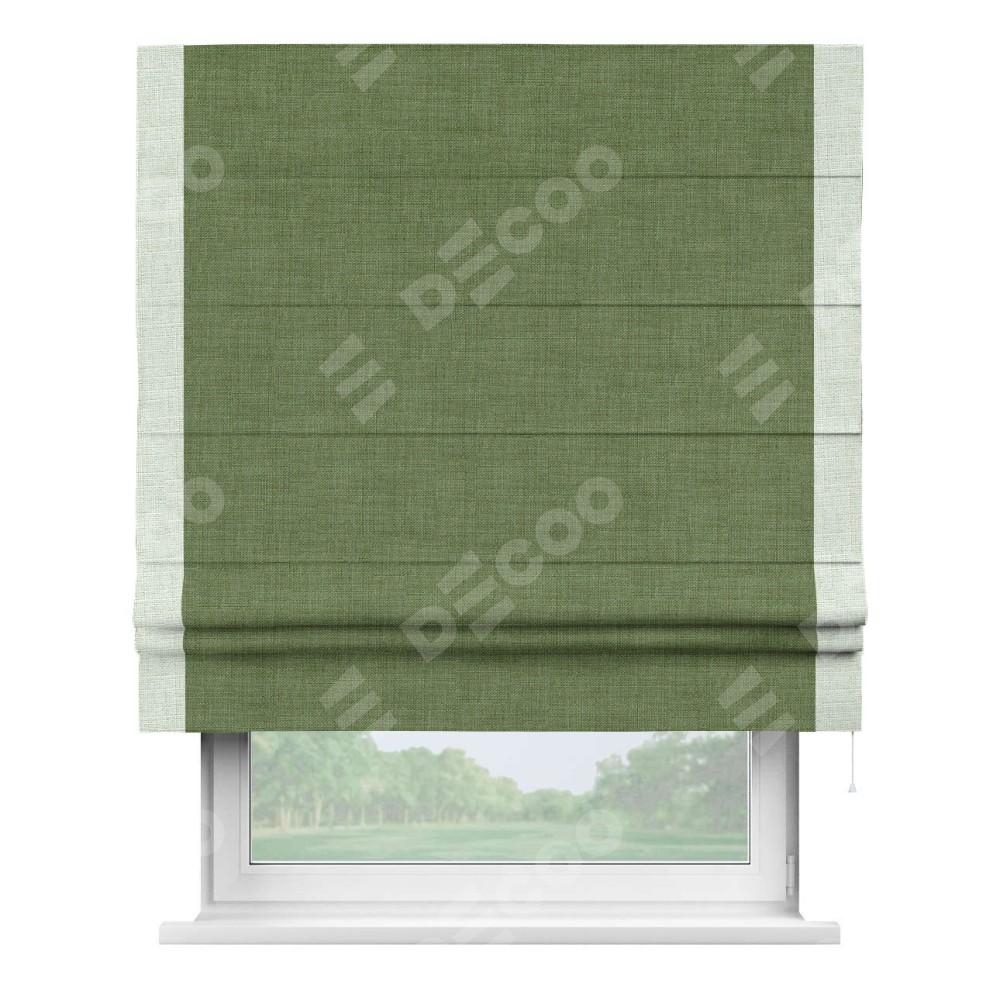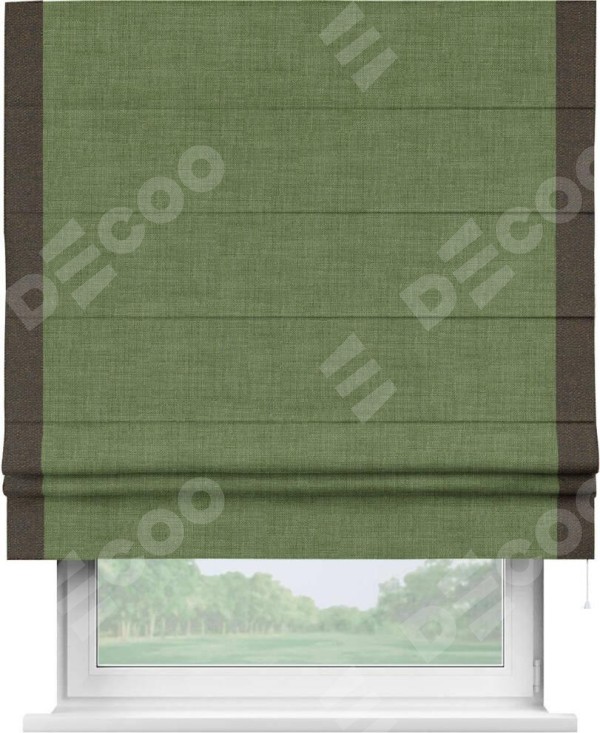 Римская штора «Кортин» для проёма, лён зелёный, с кантом Стрим Дуо