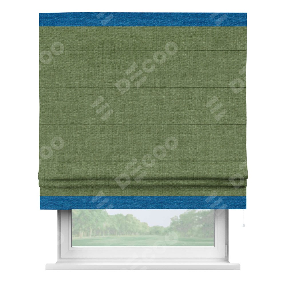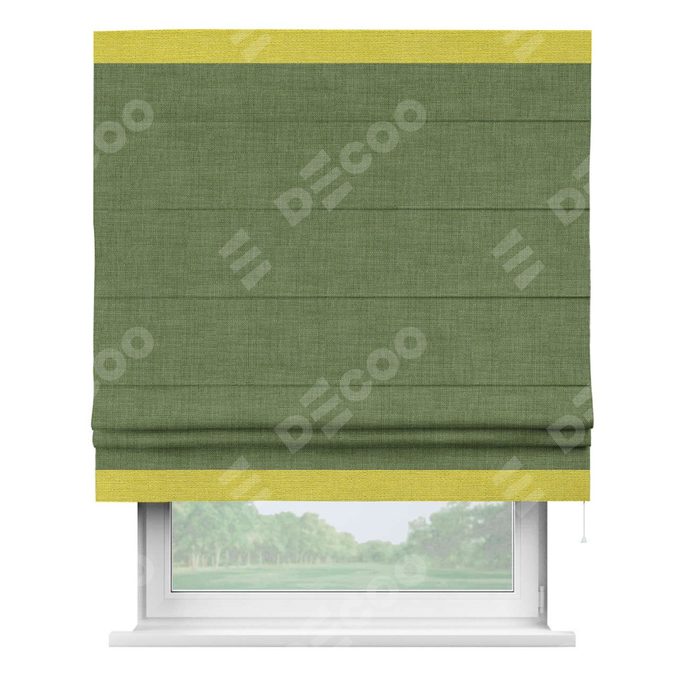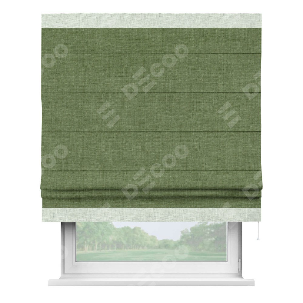 Римская штора «Кортин» для проёма, лён зелёный, с кантом Горизонт