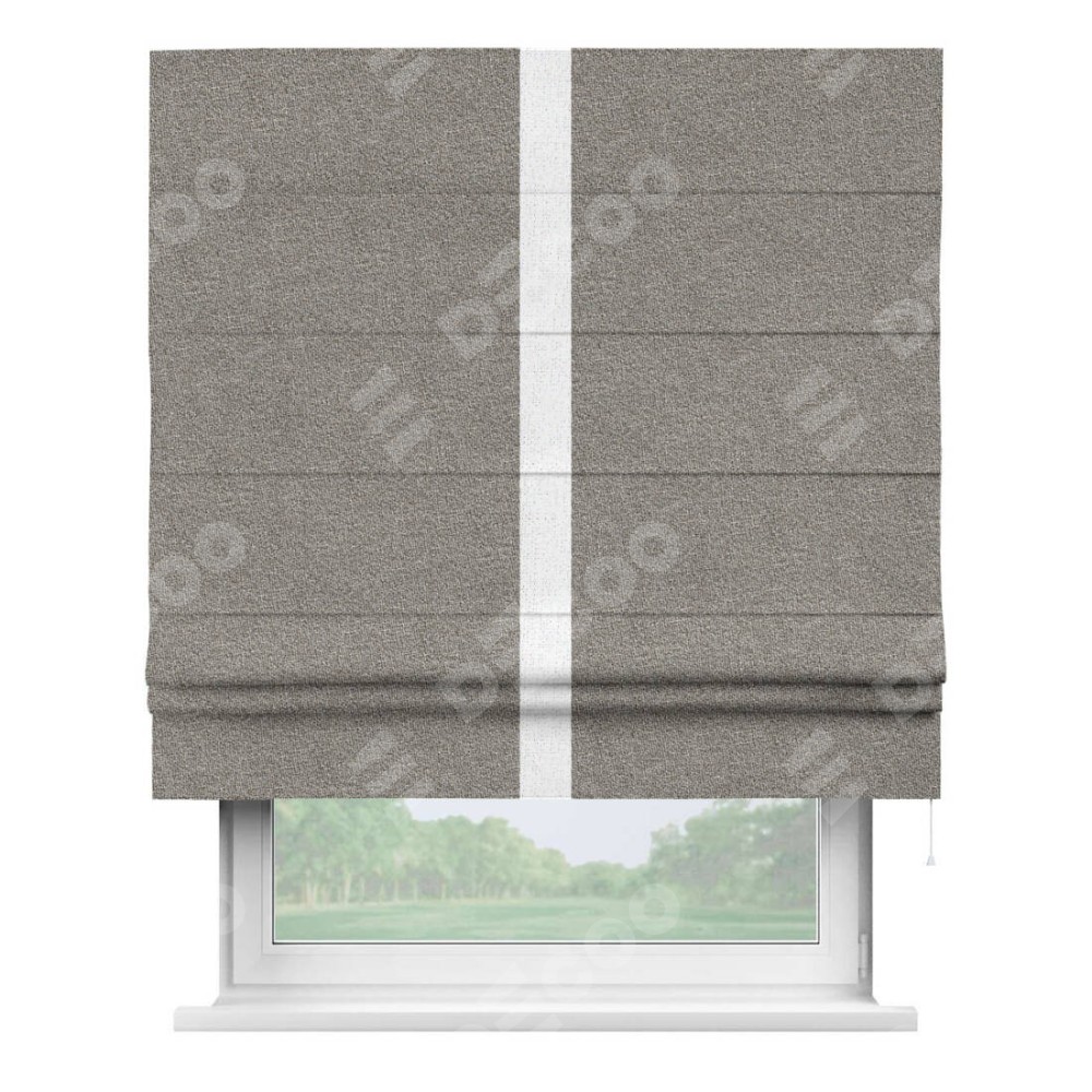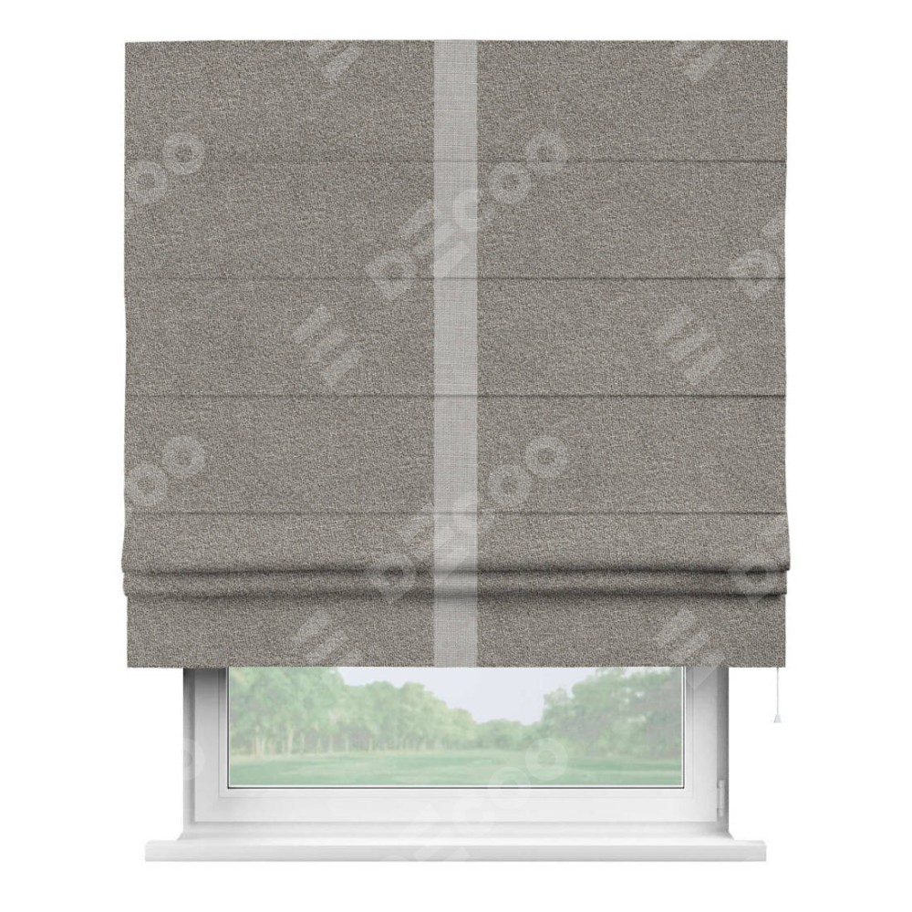 Римская штора «Кортин» для проёма, лён меланж натуральный, с кантом Хайвэй