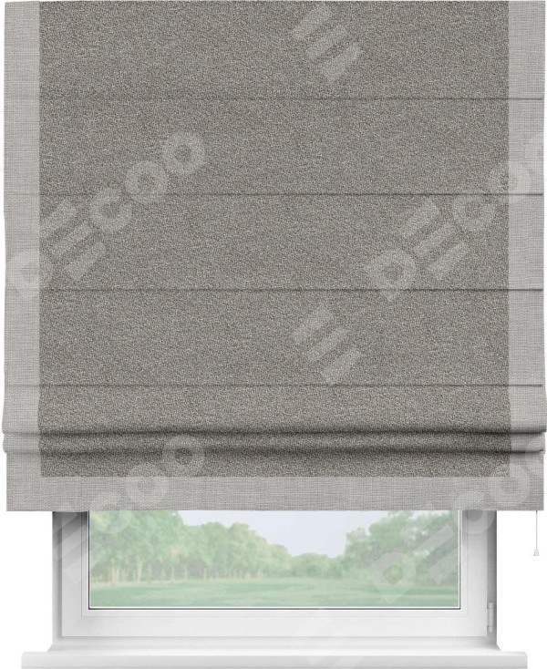 Римская штора «Кортин» для проёма, лён меланж натуральный, с кантом Виктория