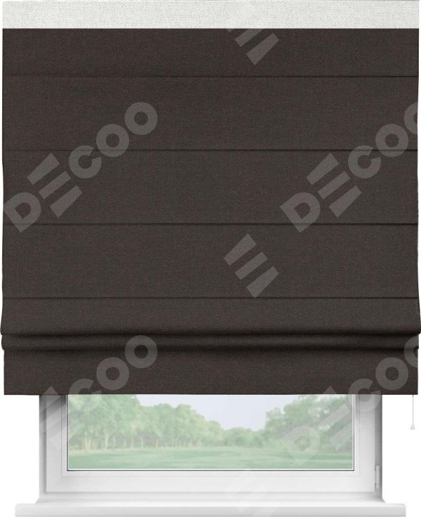 Римская штора «Кортин» для проёма, лён тёмно-коричневый, с кантом Кинг