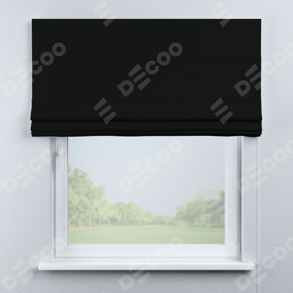 Классическая римская штора производителя «Cortin», пошита из ткани однотонный блэкаут черный, артикул: 37. Имеет универсальный механизм и подходит для монтажа: на потолок, на стену и в нишу.