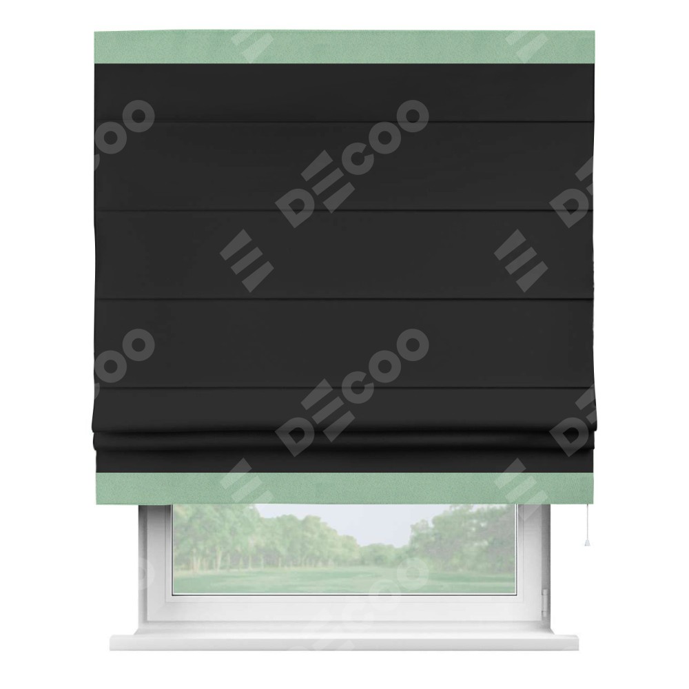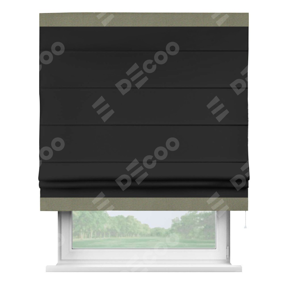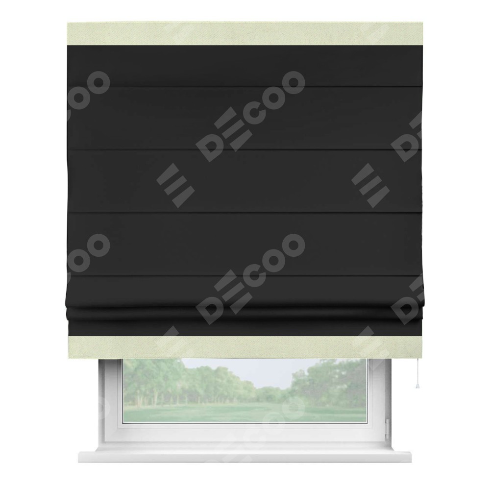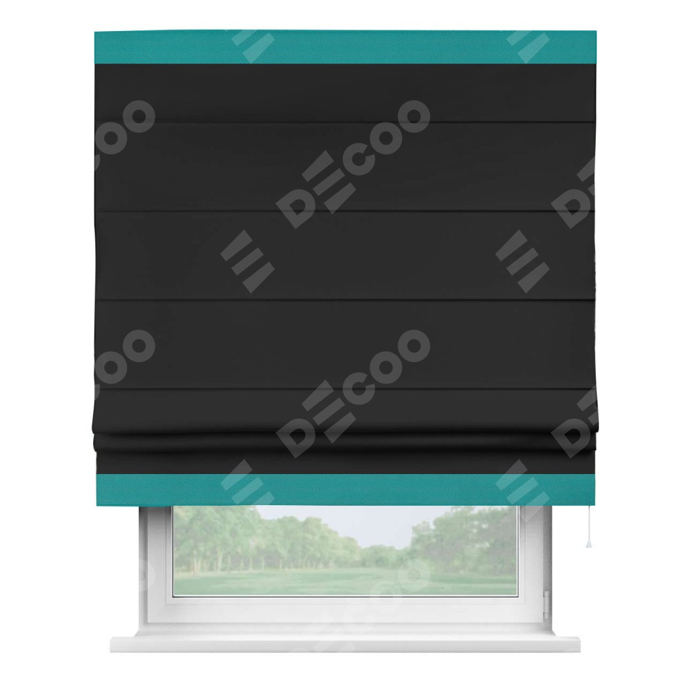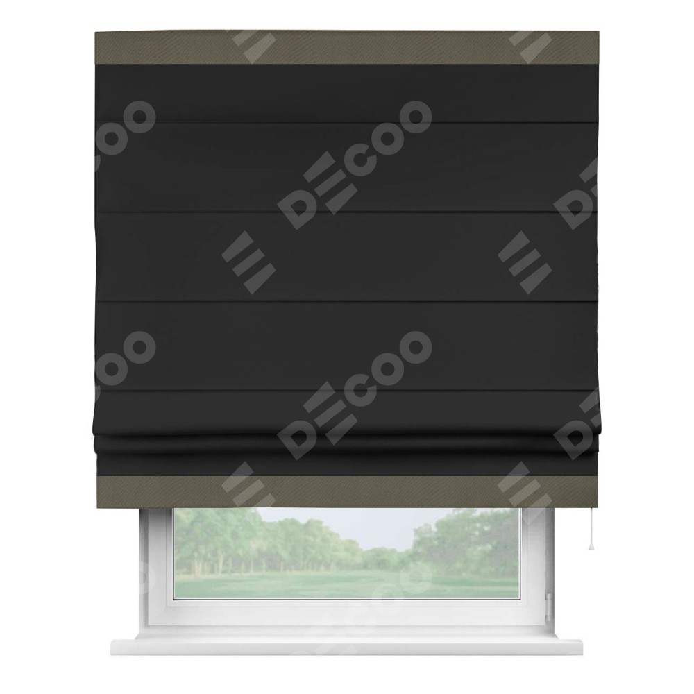 Римская штора «Cortin» для проёма, блэкаут однотонный черный с кантом Горизонт