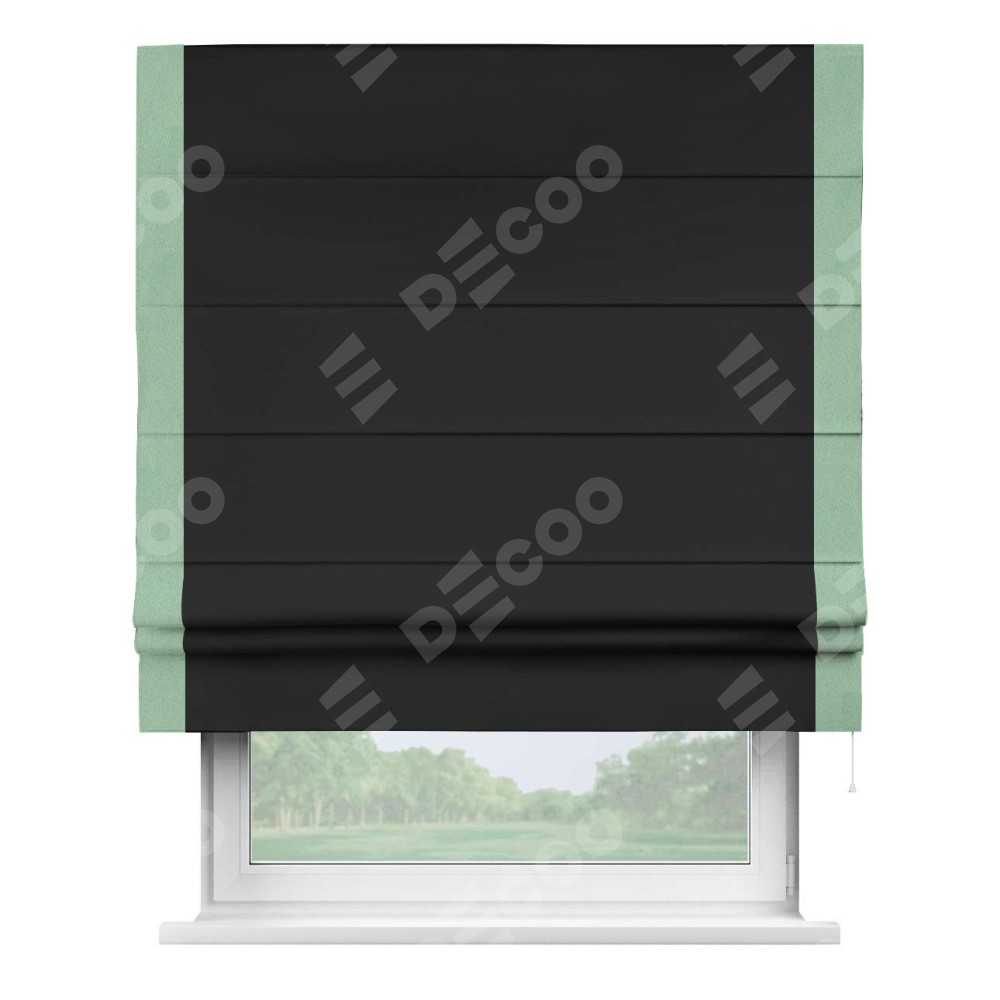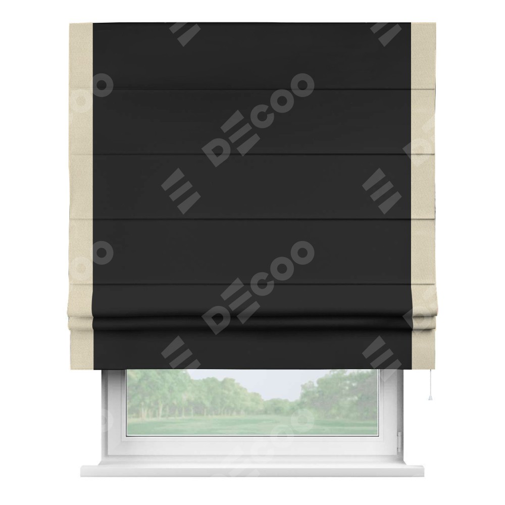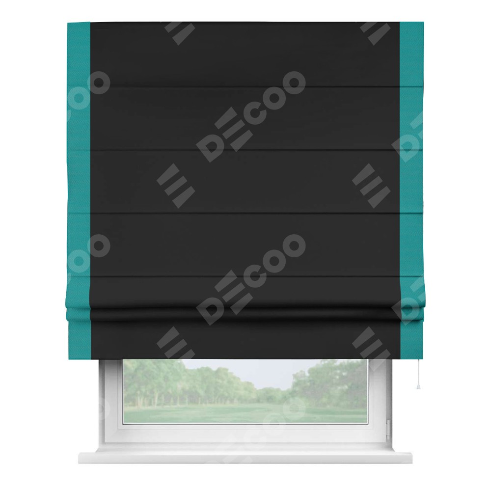 Римская штора «Cortin» для проёма, блэкаут однотонный черный с кантом Стрим Дуо