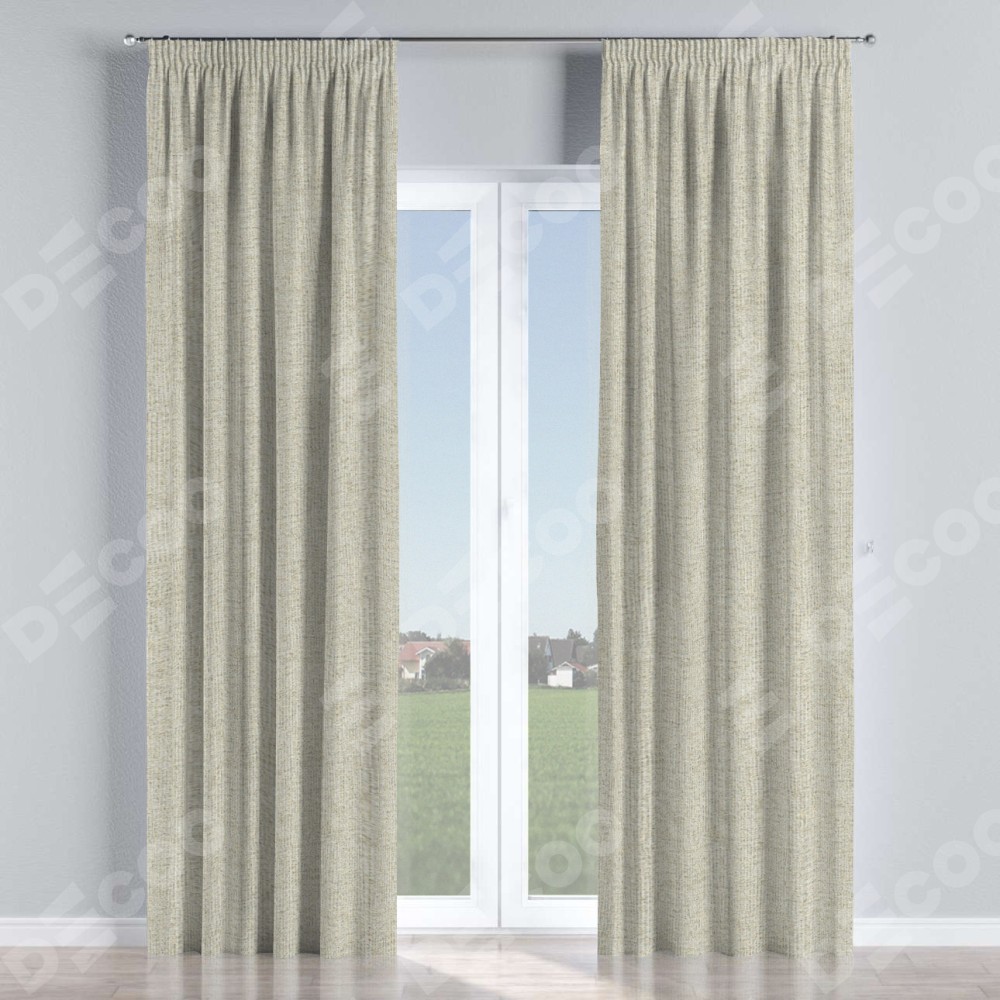 С изнаночной стороны в верхней части штор пристрачивается шторная лента с декоративными складками «Карандаш». Для создания элегантных складок рекомендуемый коэффициент 1:2 (на 100 см. ширины проёма 200 см. ширины ткани). Важно! Ширина штор указана без учёта коэффициента сборки!
