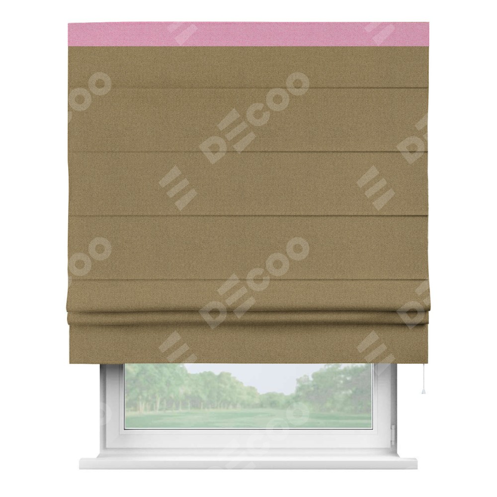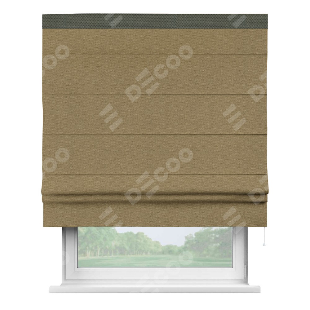 Римская штора «Кортин» с кантом Кинг, для проема, ткань лён димаут, оливковый