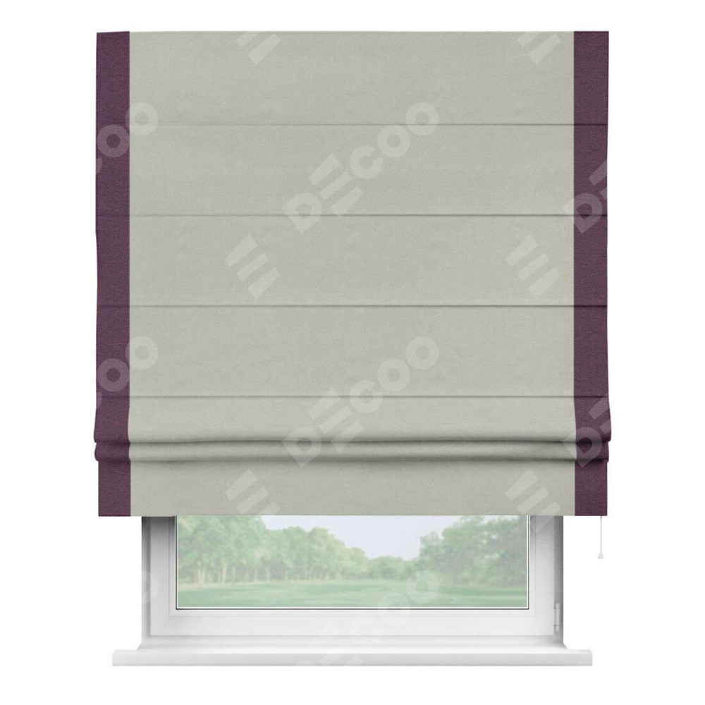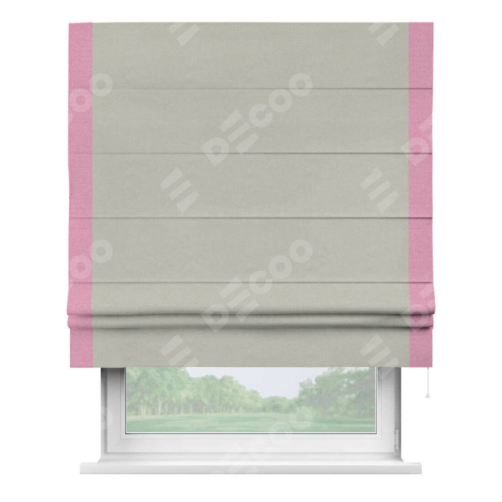 Римская штора «Кортин» с кантом Стрим Дуо, для проема, ткань лён димаут, светло-серый