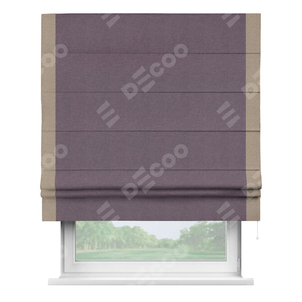Римская штора «Кортин» с кантом Стрим Дуо, для проема, ткань лён димаут, светло-фиолетовый