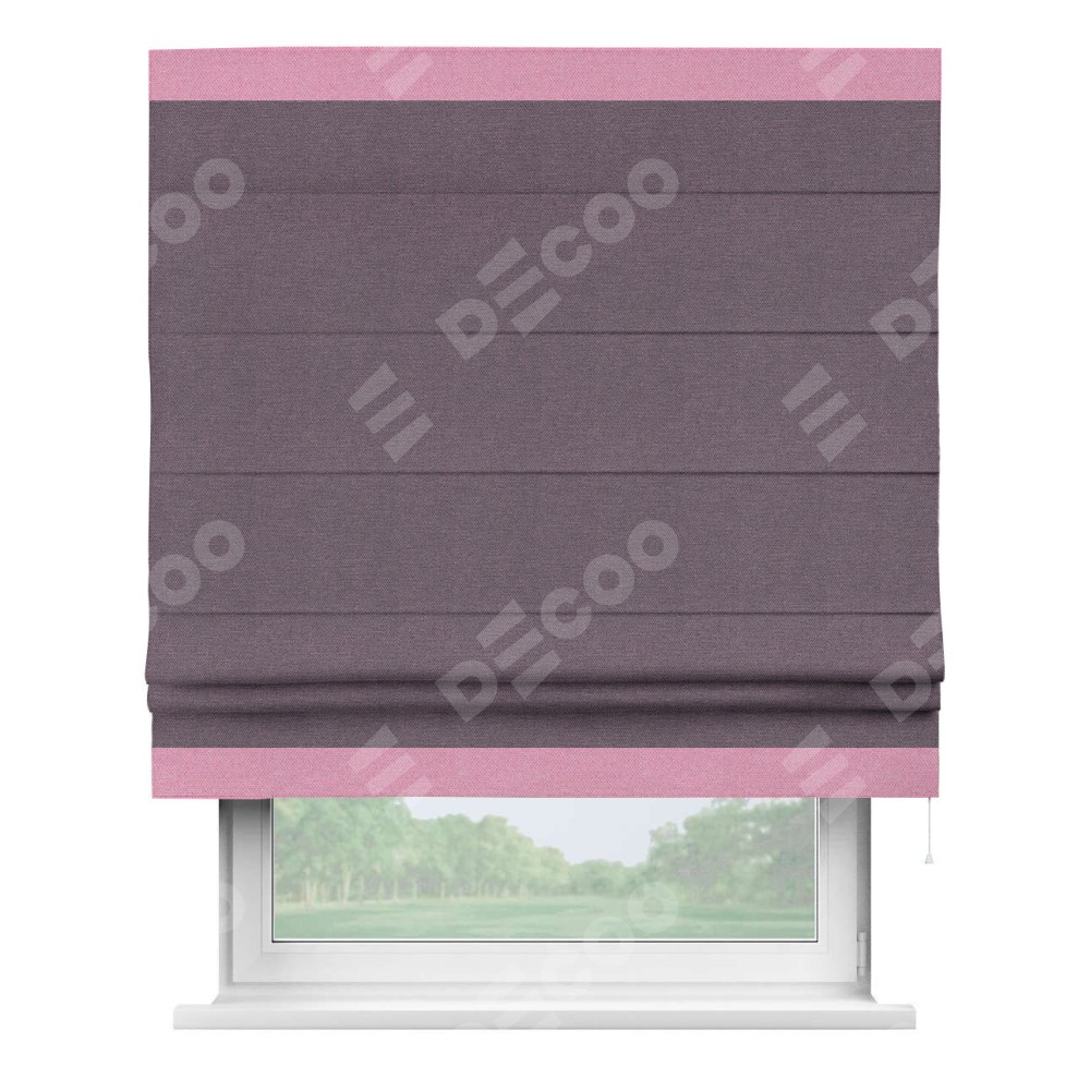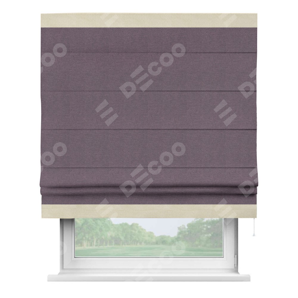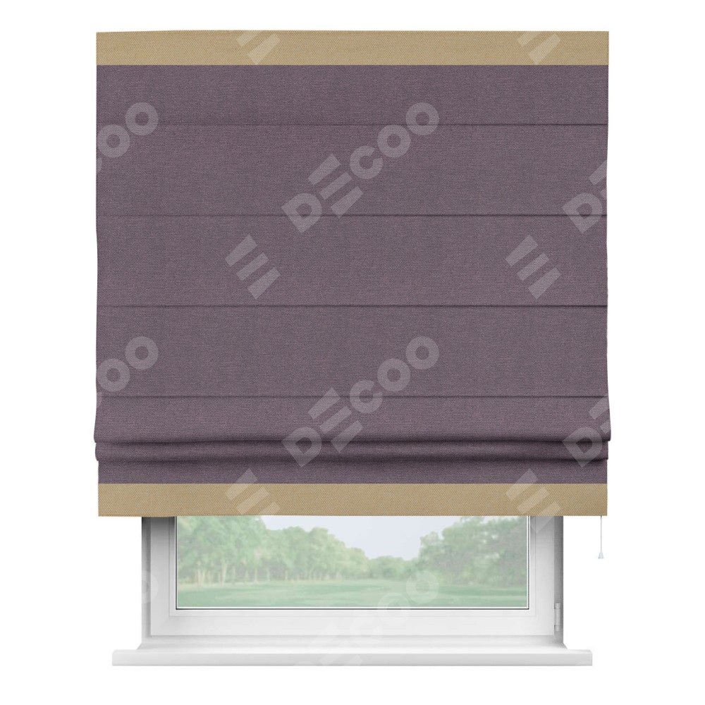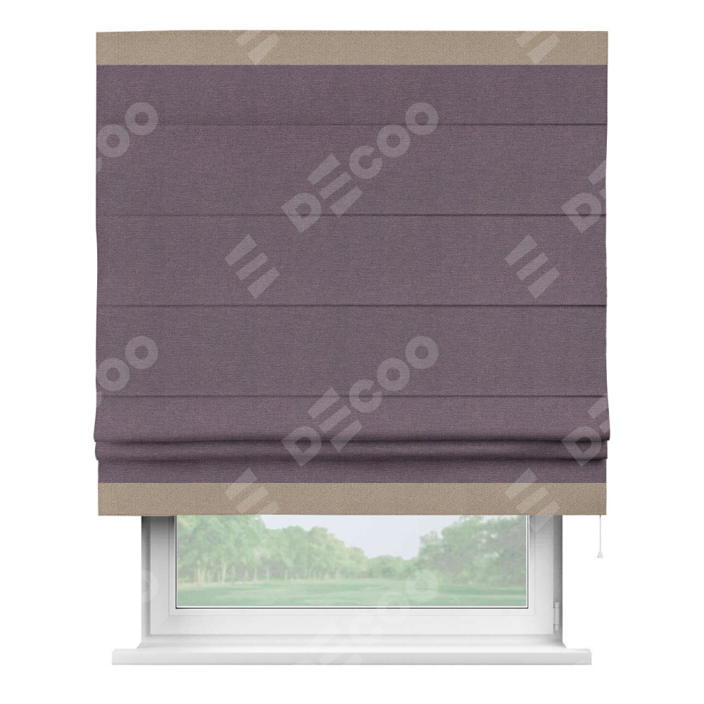 Римская штора «Кортин» с кантом Горизонт, для проема, ткань лён димаут, светло-фиолетовый