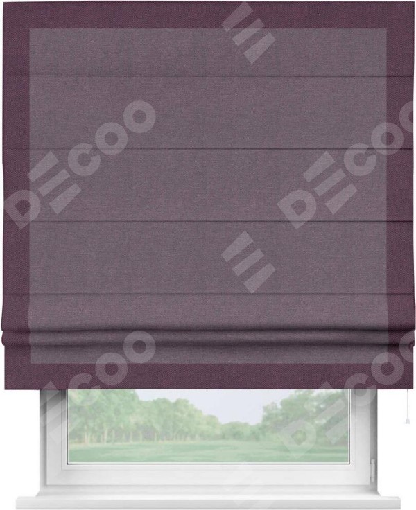 Римская штора «Кортин» с кантом Чесс, для проема, ткань лён димаут, светло-фиолетовый