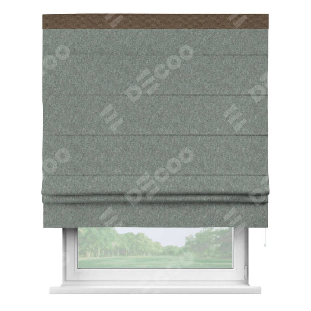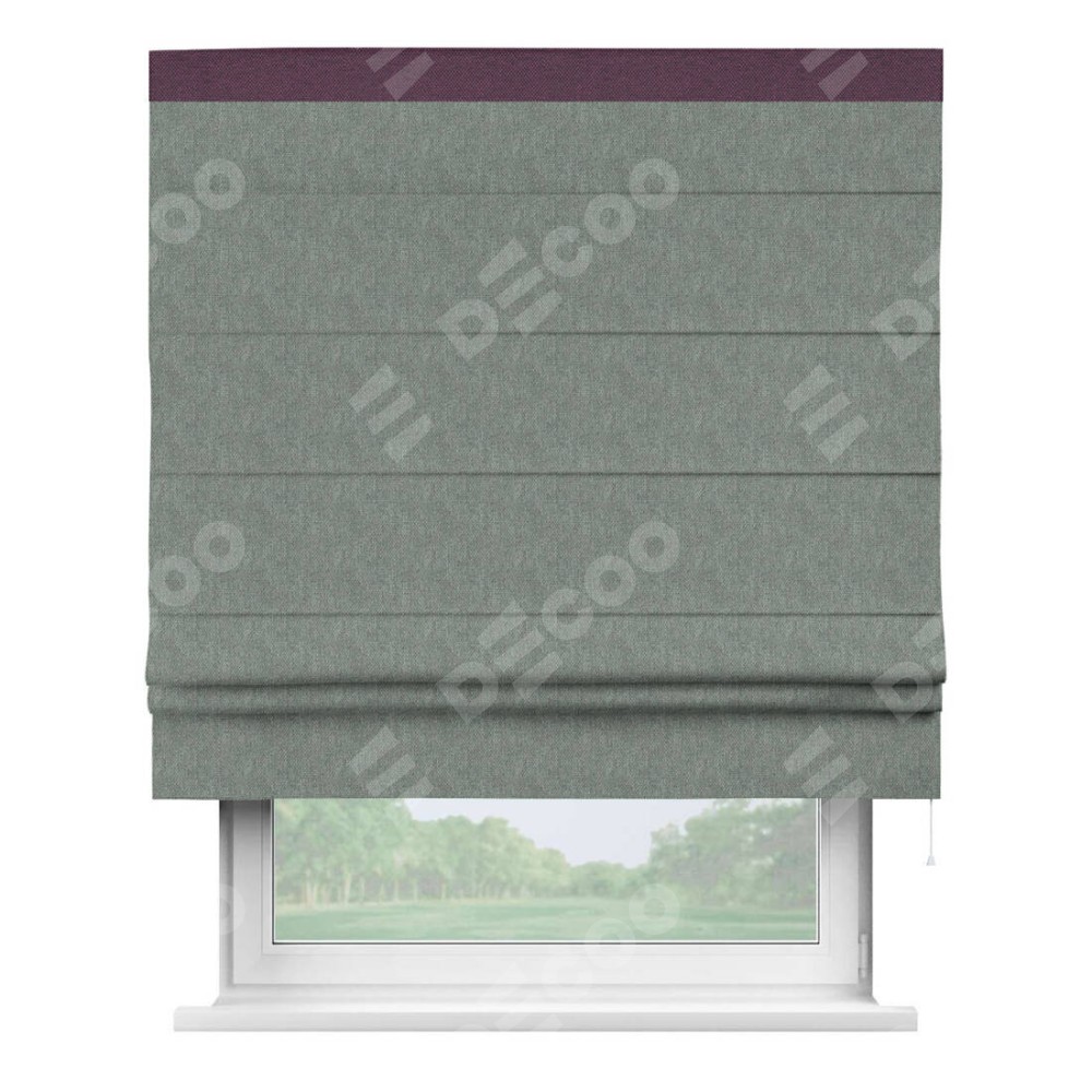 Римская штора производителя «Cortin», используется для проёма, пошита из ткани лён димаут серый, артикул 16240. Отделка шторы кантом «Кинг», ткань для канта используется из льна димаут разной расцветки на выбор. Имеет универсальный механизм и подходит для монтажа: на потолок, на стену и в нишу.