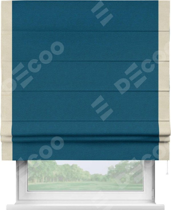 Римская штора «Кортин» с кантом Стрим Дуо, для проема, ткань лён димаут, синий