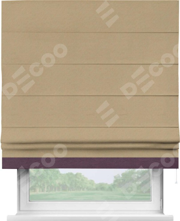 Римская штора «Кортин» с кантом Джестер, для проема, ткань лён димаут, тёмно-бежевый