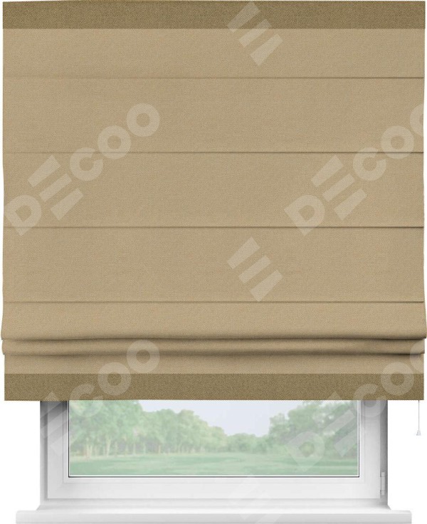 Римская штора «Кортин» с кантом Горизонт, для проема, ткань лён димаут, тёмно-бежевый