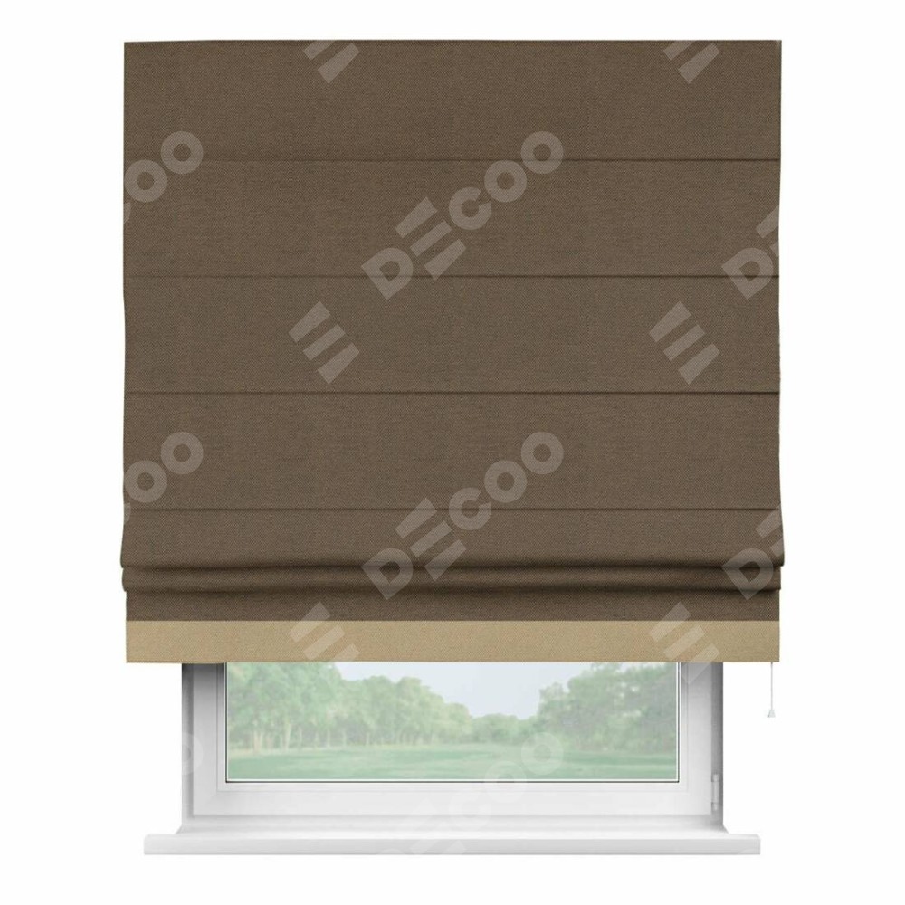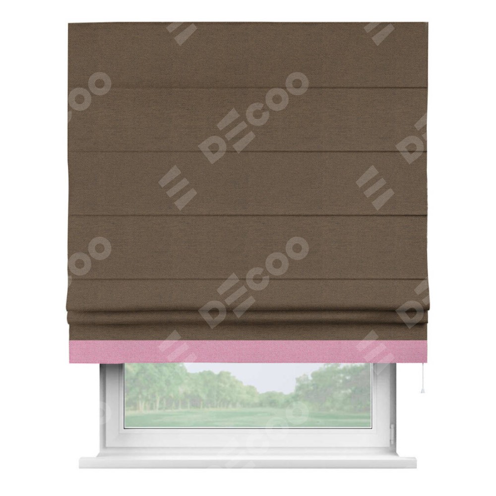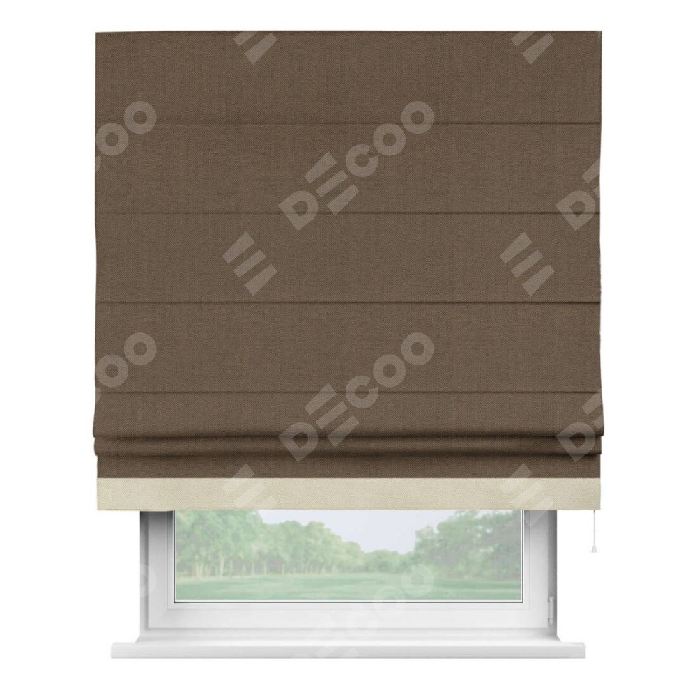 Римская штора «Кортин» с кантом Джестер, для проема, ткань лён димаут, тёмно-коричневый