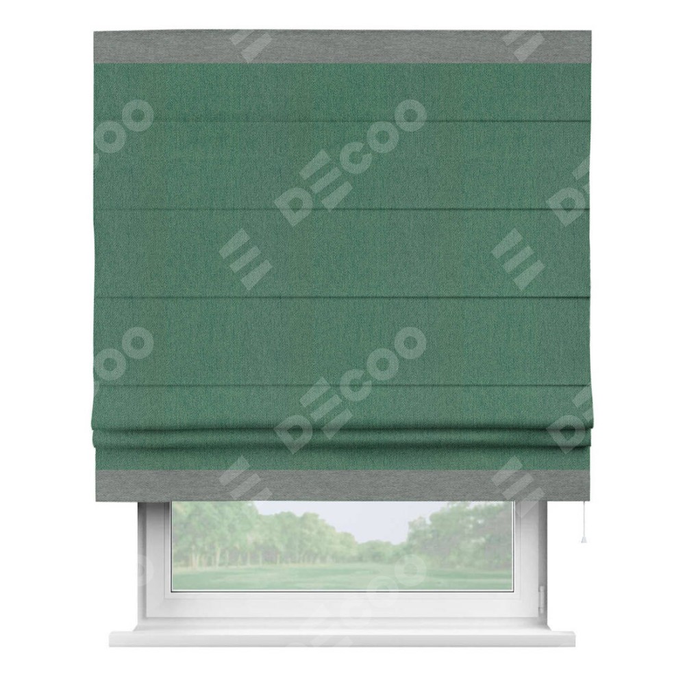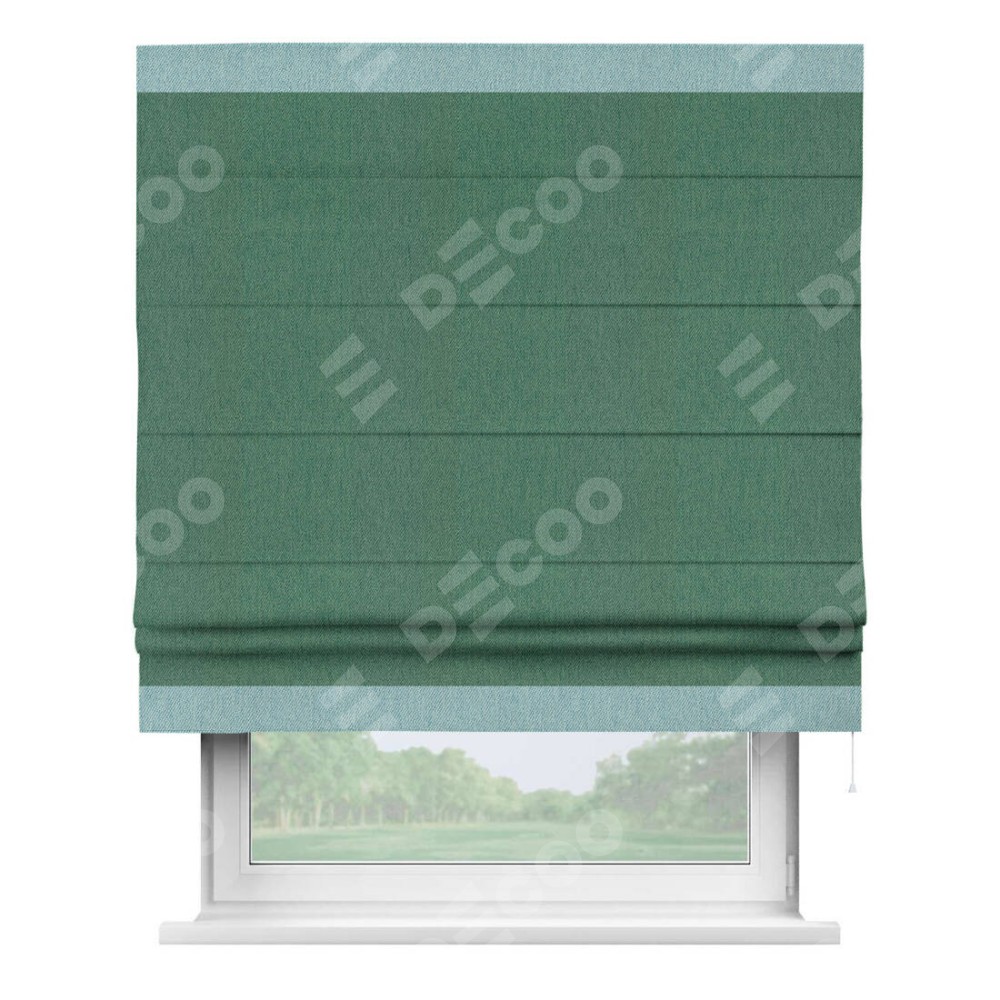 Римская штора «Кортин» с кантом Горизонт, для проема, ткань твид блэкаут, зелёный