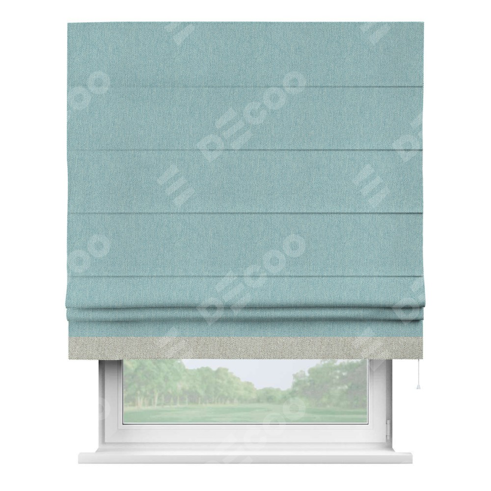 Римская штора «Кортин» с кантом Джестер, для проема, ткань твид блэкаут, небесно-голубой