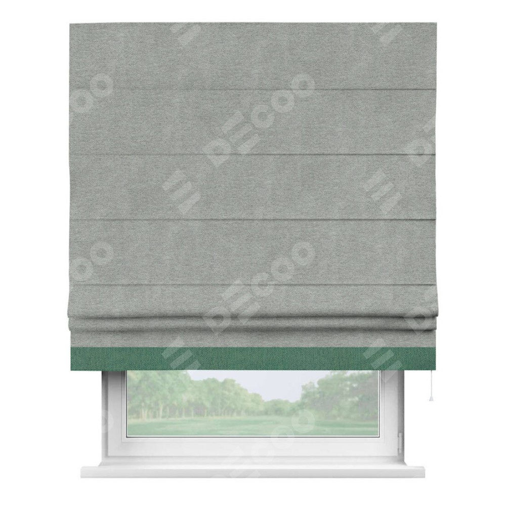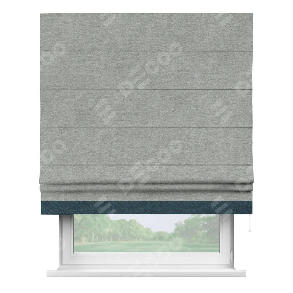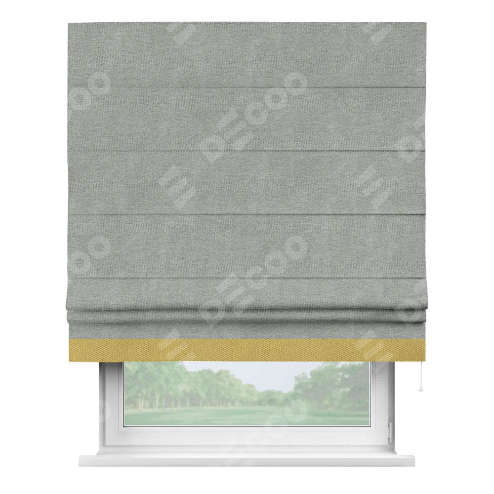 Римская штора производителя «Cortin», используется для проёма, пошита из ткани твид блэкаут светло-серый, артикул 21576. Отделка шторы кантом «Джестер», ткань для канта используется из твида разной расцветки на выбор. Имеет универсальный механизм и подходит для монтажа: на потолок, на стену и в нишу.