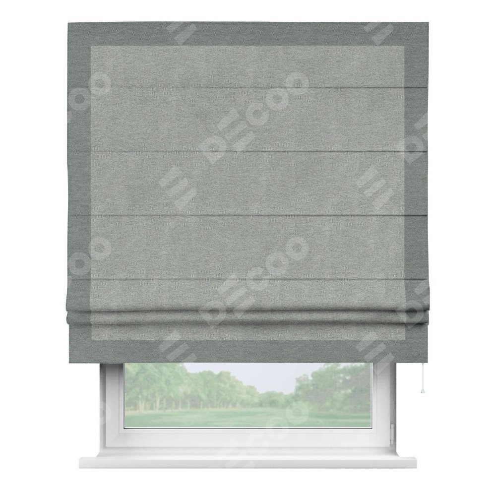 Римская штора производителя «Cortin», используется для проёма, пошита из ткани твид блэкаут светло-серый, артикул 21576. Отделка шторы кантом «Чесс», ткань для канта используется из твида разной расцветки на выбор. Имеет универсальный механизм и подходит для монтажа: на потолок, на стену и в нишу.