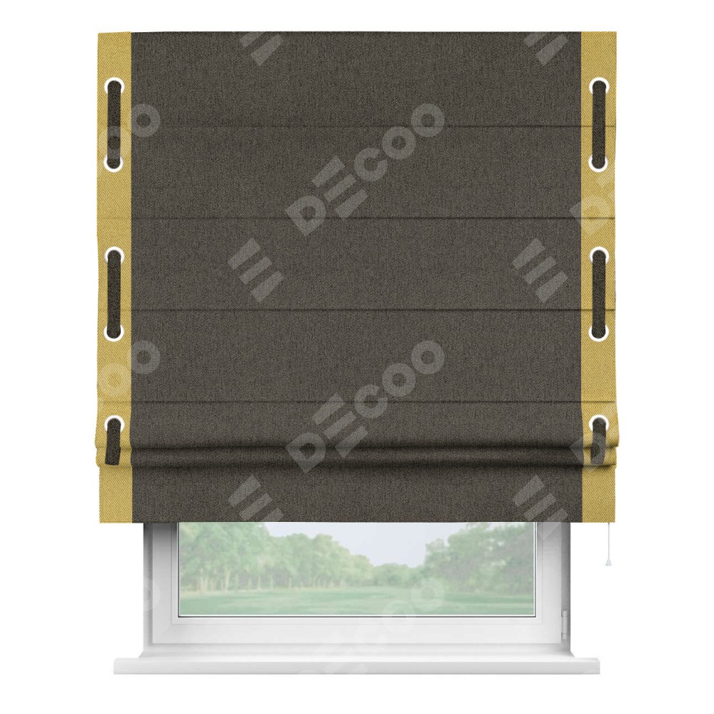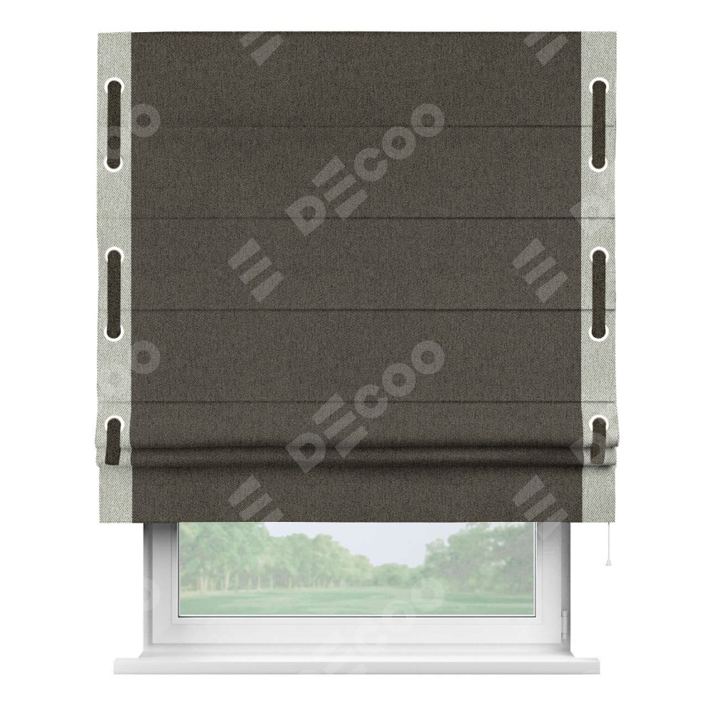 Римская штора «Кортин» с кантом Стрим Дуо (люверсы с пояском), для проема, ткань твид блэкаут, тёмно-коричневый