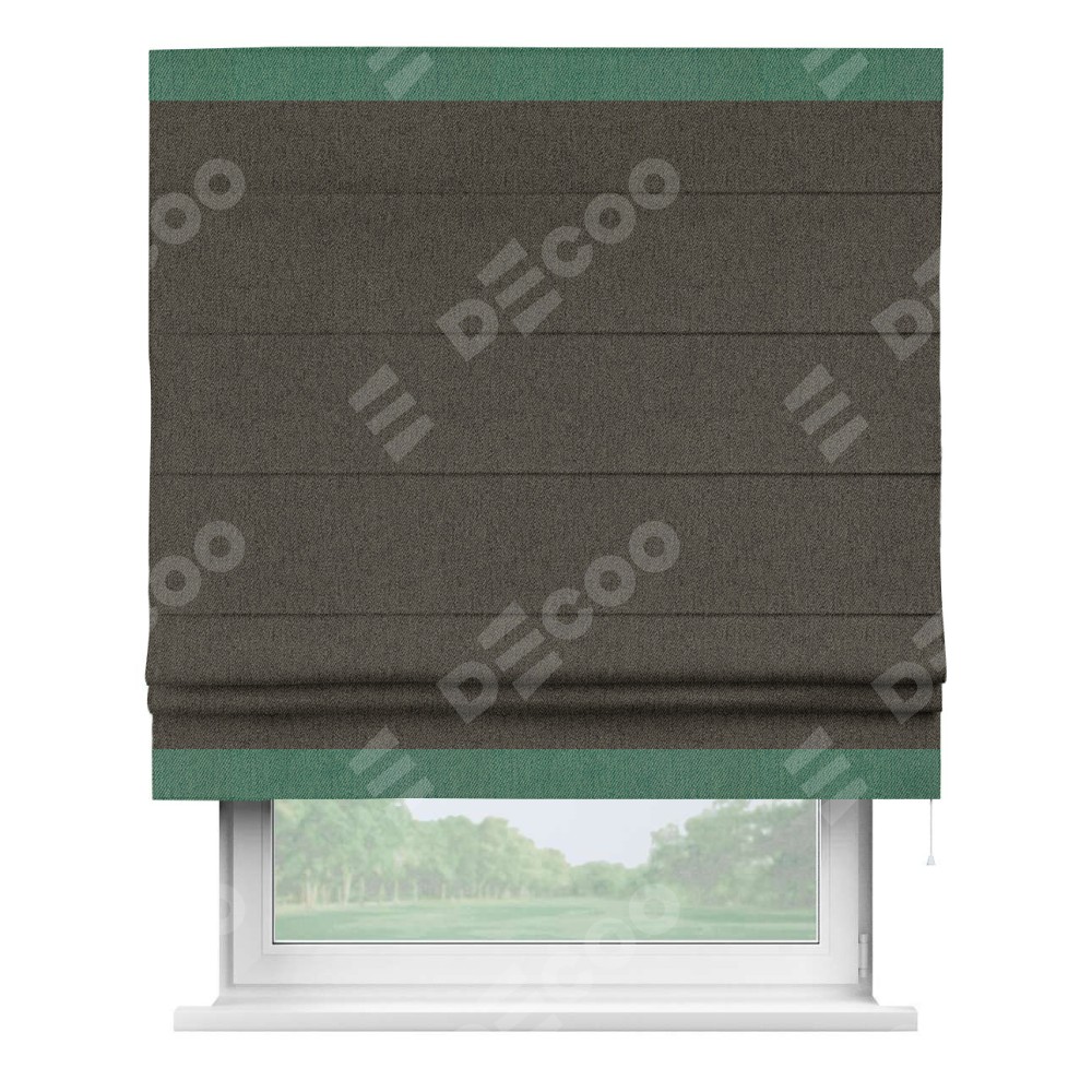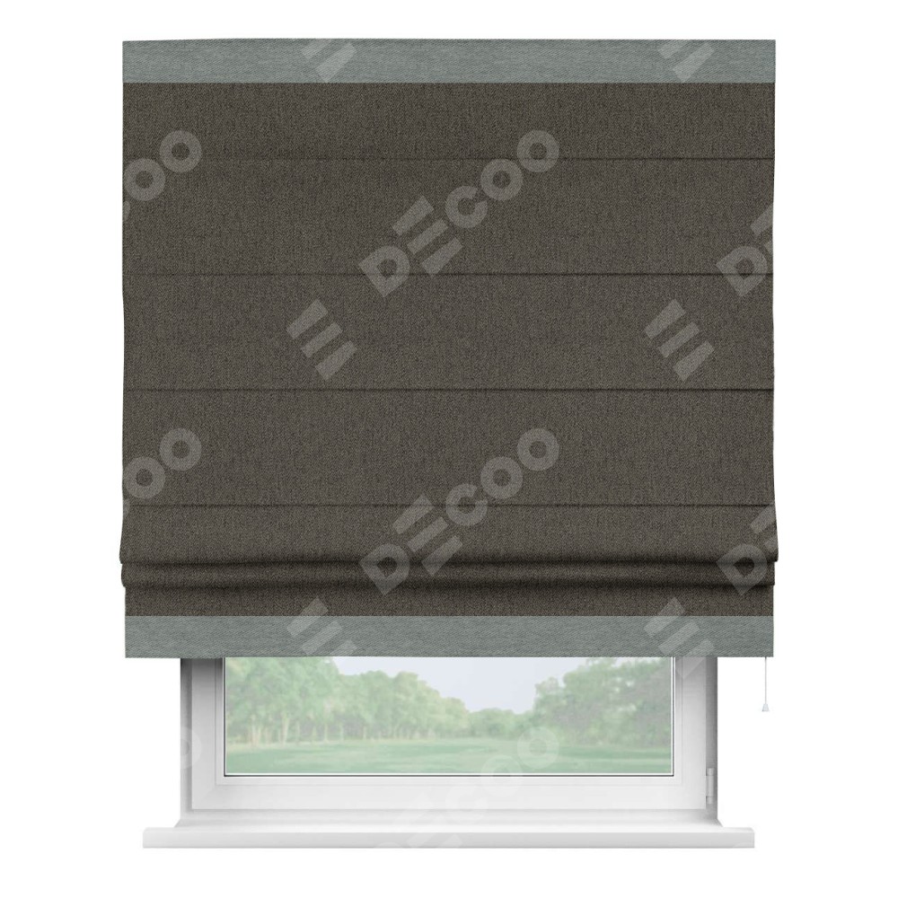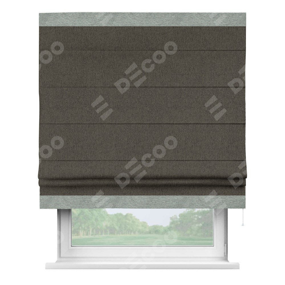 Римская штора «Кортин» с кантом Горизонт, для проема, ткань твид блэкаут, тёмно-коричневый