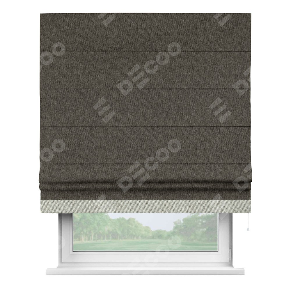 Римская штора «Кортин» с кантом Джестер, для проема, ткань твид блэкаут, тёмно-коричневый