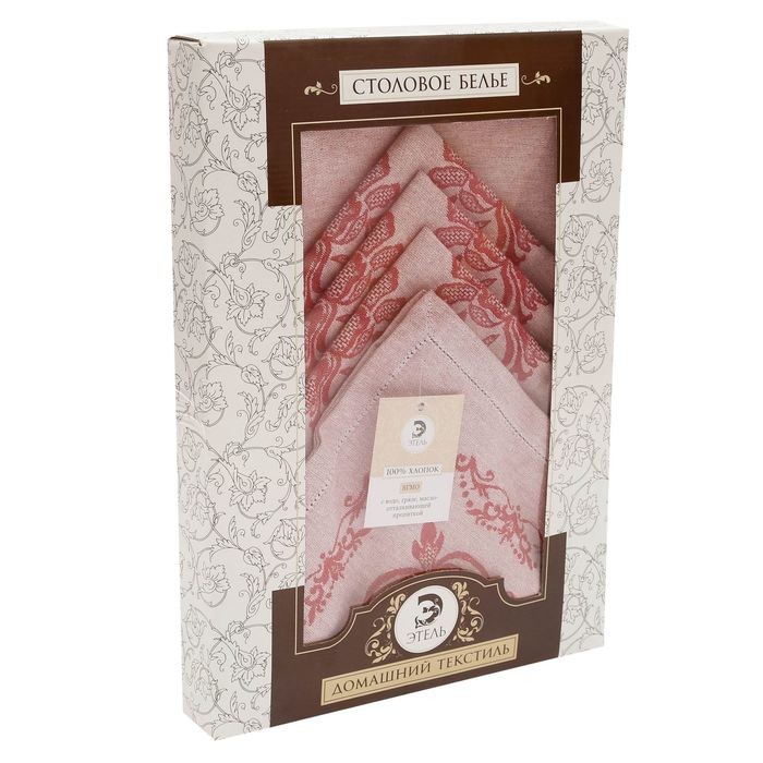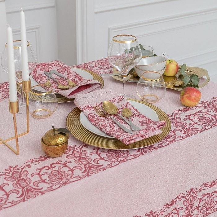 Столовый набор «Этель» (скатерть 150×300 см, салфетки 45×45 см — 12 шт.) цвет бордо, хл. с ВМГО