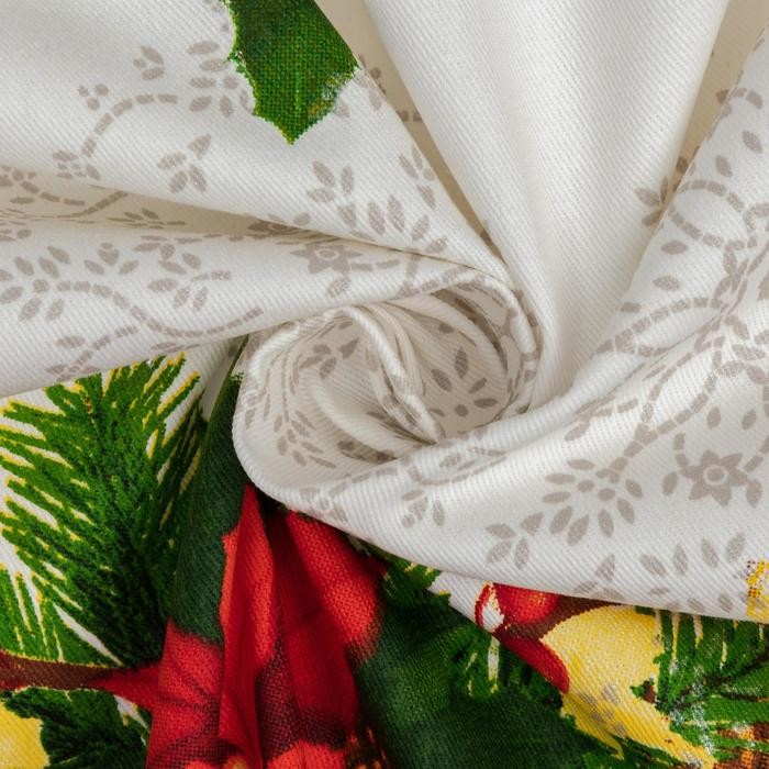 Скатерть украсит праздничный интерьер. Изделия с эксклюзивным принтом сшиты из хлопкового полотна. Этот материал имеет плотную и упругую структуру, обладает высокой прочностью и на ура справляется с первостепенными задачами: