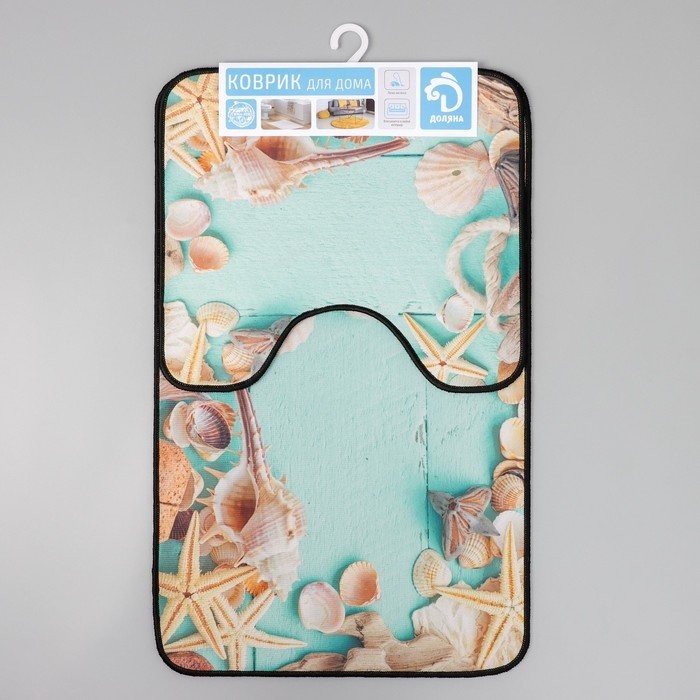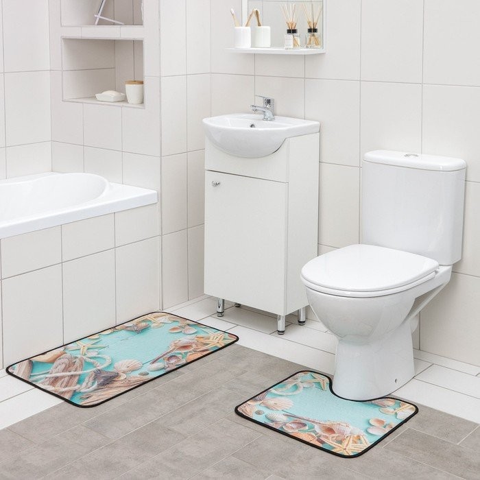Набор ковриков для ванны и туалета Доляна «Ракушки», 2 шт: 40×45, 45×75 см