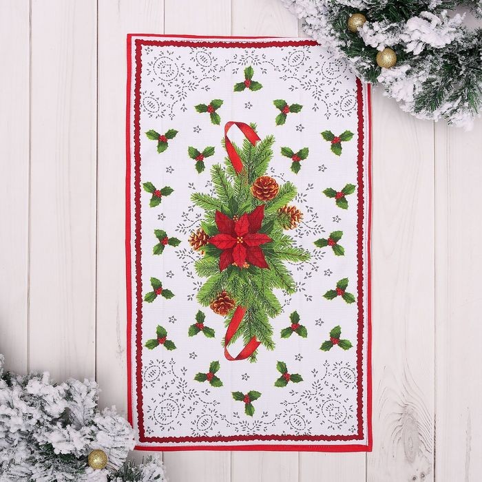 Полотенце кухонное новогоднее «Паунсетия» 35×60 см, 160 г/м2